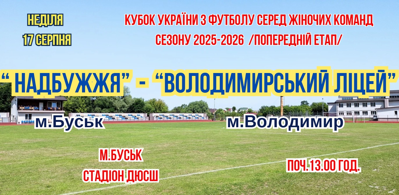 Вже цієї неділі, 17 серпня, на стадіоні Буської ДЮСШ відбудеться матч Кубка України з футболу серед жіночих команд сезону 2025–2026.