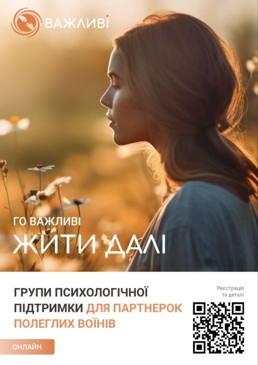 Запрошуємо вас приєднатися до нової групи психологічної підтримки «Жити далі», спеціально створеної для дружин полеглих військовослужбовців. Ця ініціатива спрямована на те, щоб надати безпечний простір, де жінки, які пережили втрату, можуть відкрито говорити про свій біль, не боячись осуду, і знайти підтримку в інших, хто розуміє їхній досвід.