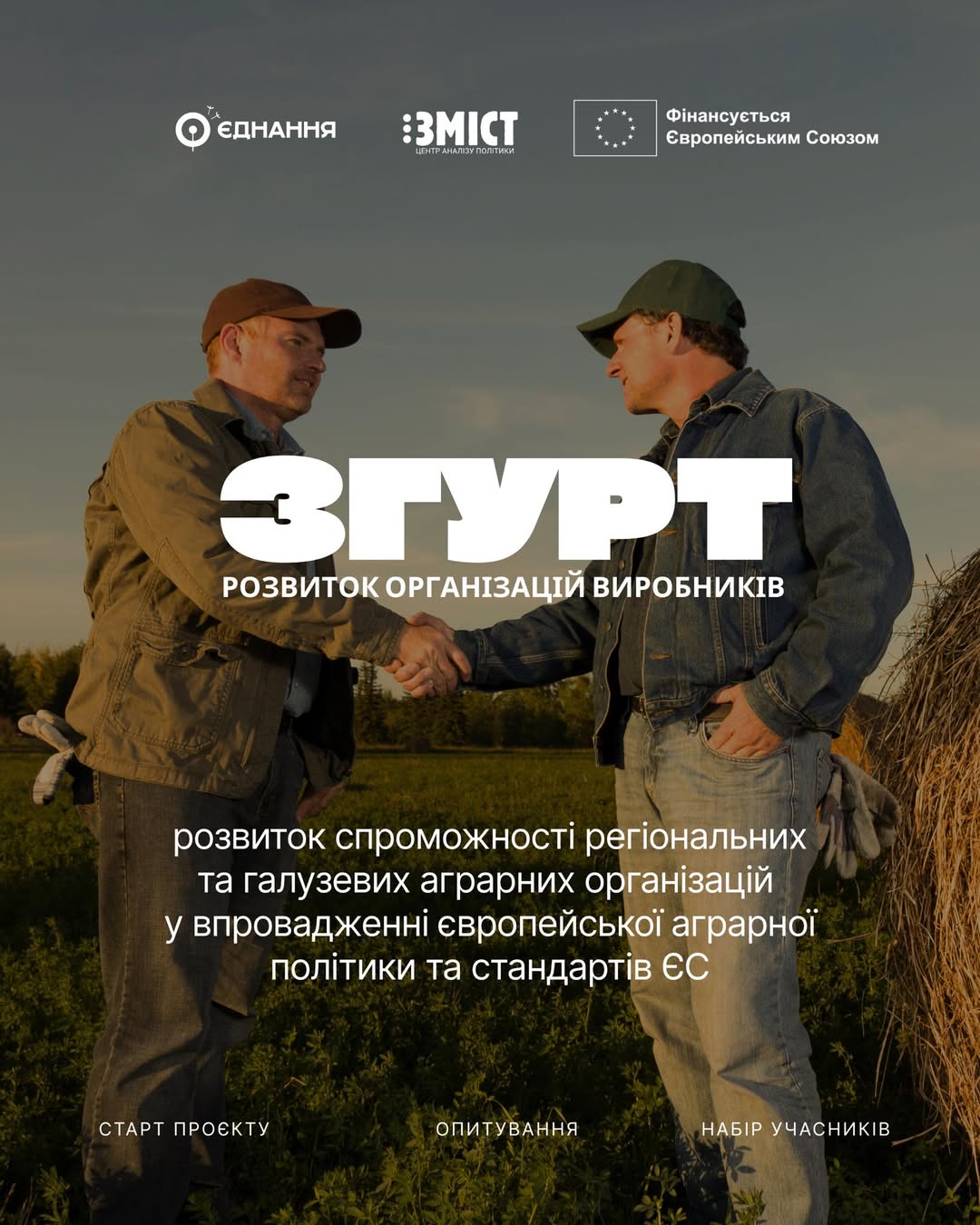 🤝 Саме для цього ми запускаємо «ЗГУРТ» — проєкт, який допоможе аграрним організаціям краще зрозуміти майбутні зміни, підготуватися до них та посилити власну спроможність.