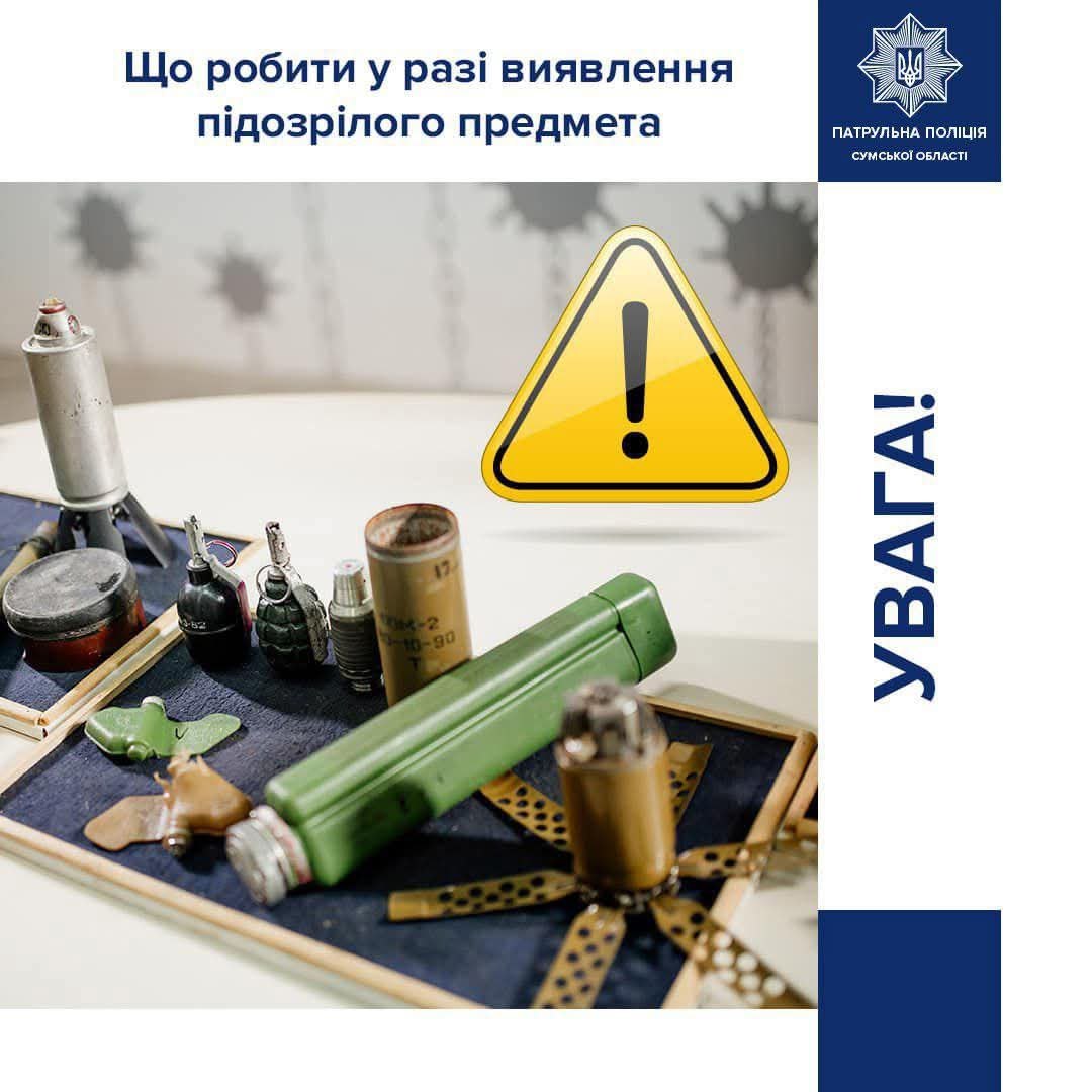 ❗️Застерігаємо громадян дотримуватися заходів безпеки під час виявлення предметів, схожих на вибухонебезпечні