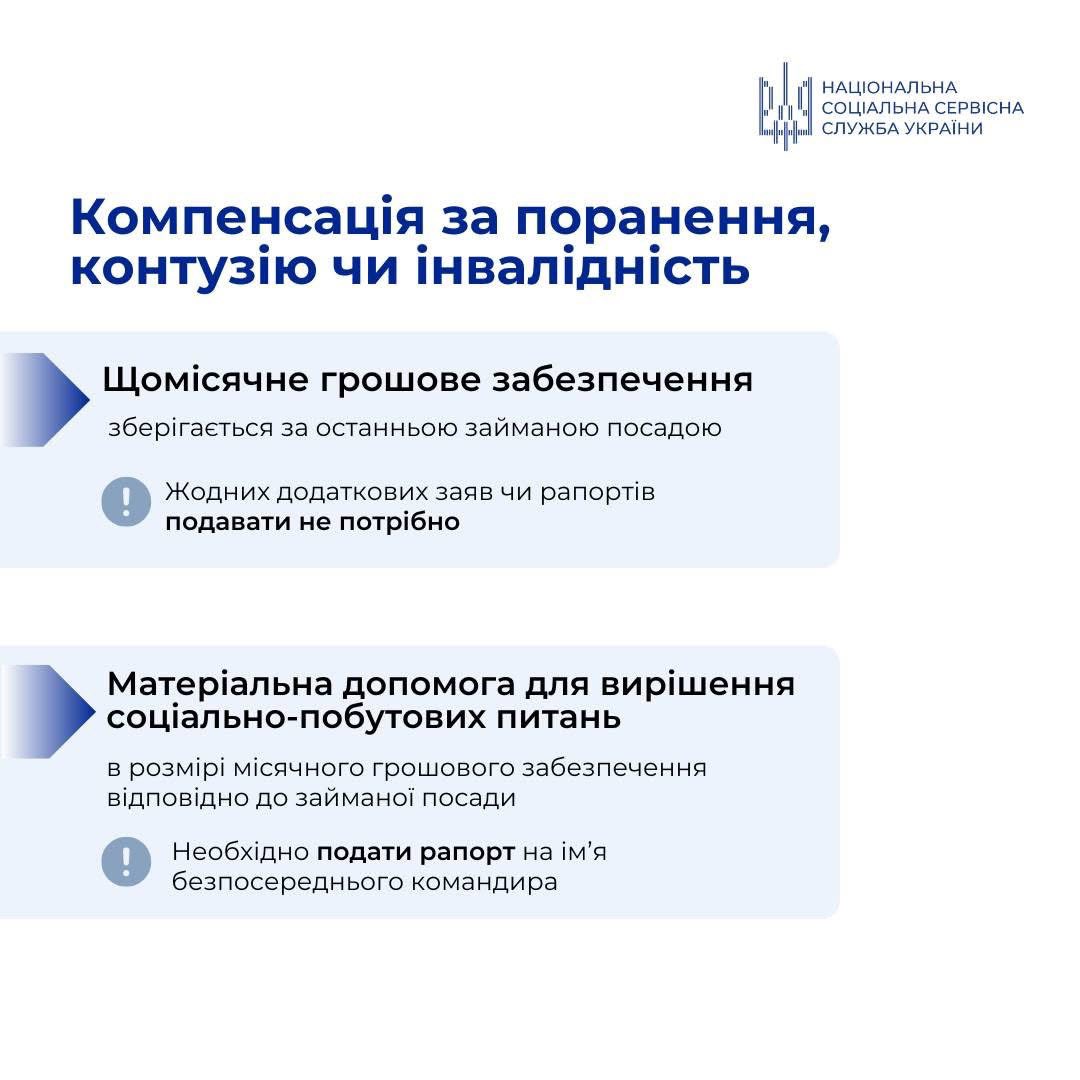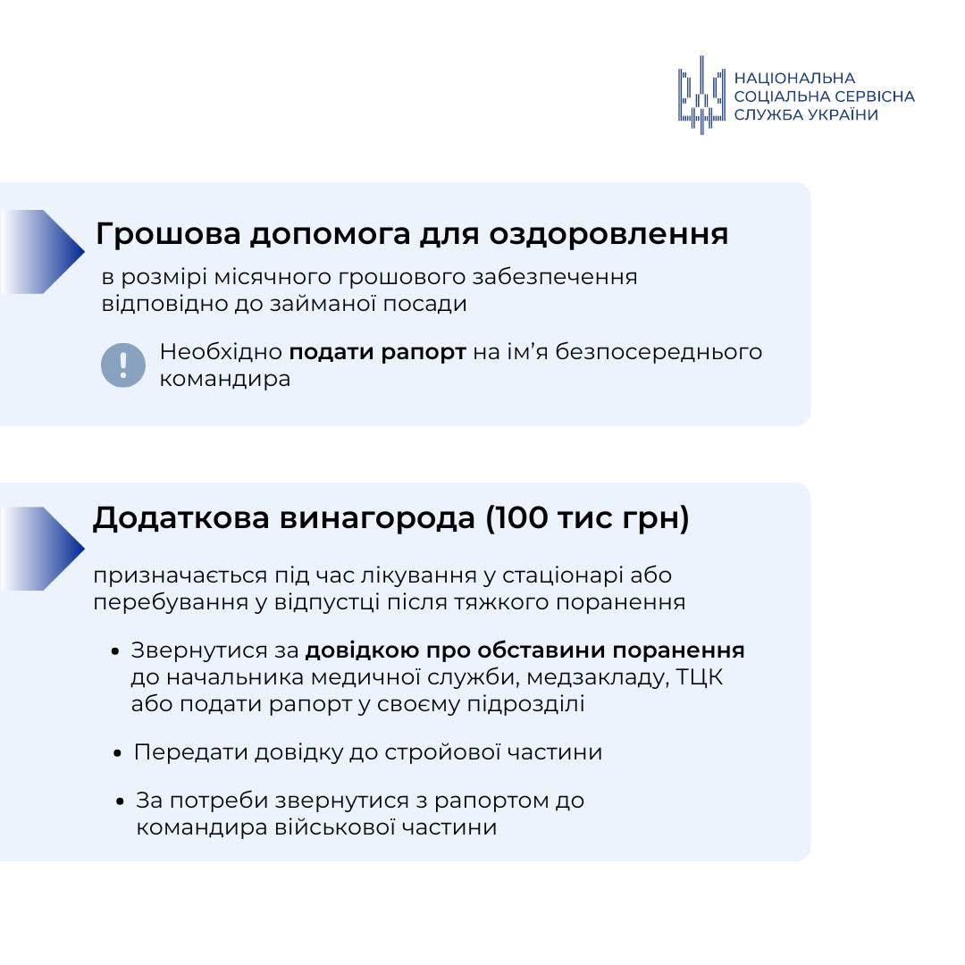 Грошова допомога військовослужбовцям за поранення, контузії та травми