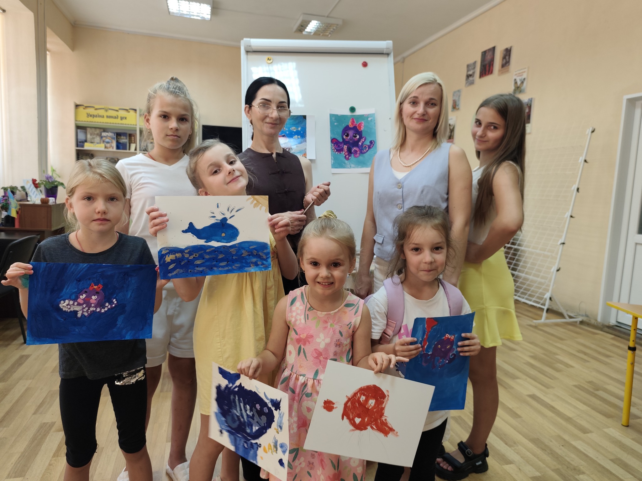 Особливим гостем заходу стала Ірина Девадзе – талановита художниця, психолог та арттерапевт. Маючи багатий досвід роботи з дітьми та підлітками, вона провела для юних відвідувачів унікальний мистецький майстер-клас з арттерапії під назвою «Водяний світ». Діти з неабияким ентузіазмом занурилися у творчий процес, уявляючи себе сміливими мандрівниками глибин океану. Їхнім завданням було створити власний «водяний світ», населений дивовижними та фантастичними істотами. Кожен малюнок став неповторним відображенням дитячої уяви: хтось із малюків зобразив спокійні морські пейзажі, хтось – радісних рибок, а хтось – загадкових мешканців морських глибин. Ця арттерапевтична сесія допомогла дітям не лише розкрити свій творчий потенціал, а й покращити психоемоційний стан.
