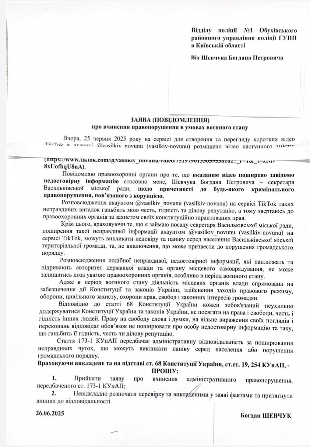 Також офіційно повідомляю, що мною вже подано заяву до правоохоронних органів щодо поширення недостовірної інформації, яка не має жодного відношення до правди та шкодить моїй діловій репутації.