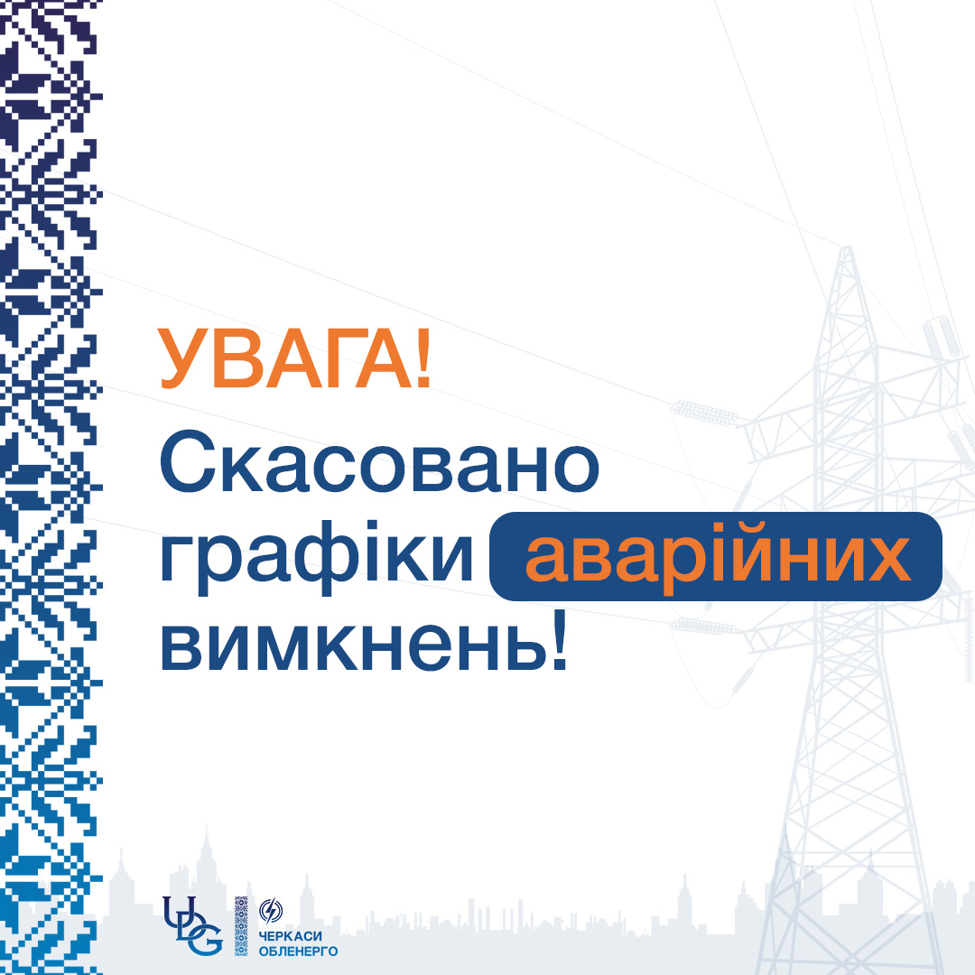 Важливі новини для мешканців Черкащини: за командою НЕК “Укренерго” з 12:48 16 жовтня було скасовано графіки аварійних відключень (ГАВ) по області. Це означає, що наразі екстрені відключення електроенергії припинено, і жителі регіону можуть насолоджуватися стабільним постачанням.