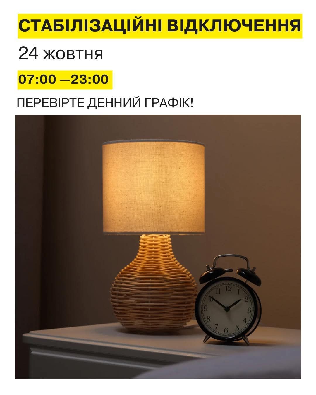 Згідно з розпорядженням Укренерго, 24 жовтня, з 07:00 до 23:00, у столиці будуть застосовані стабілізаційні відключення електроенергії. Це вимушений захід, спрямований на підтримку стабільності енергосистеми України в умовах воєнного стану.