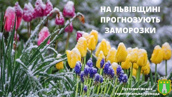 За інформацією Львівського регіонального центру з гідрометеорології України, на Львівщині очікуються сильні заморозки. Небезпечні погодні умови прогнозуються на 08 травня (по північній частині області) та в ніч з 09 на 10 травня на всій території області. Температура повітря вночі та вранці становитиме від 0 до -5°C.