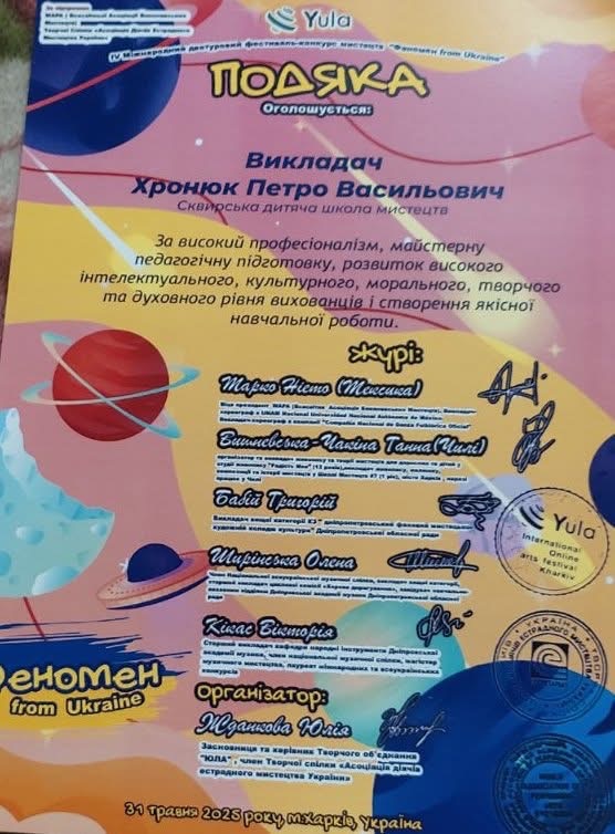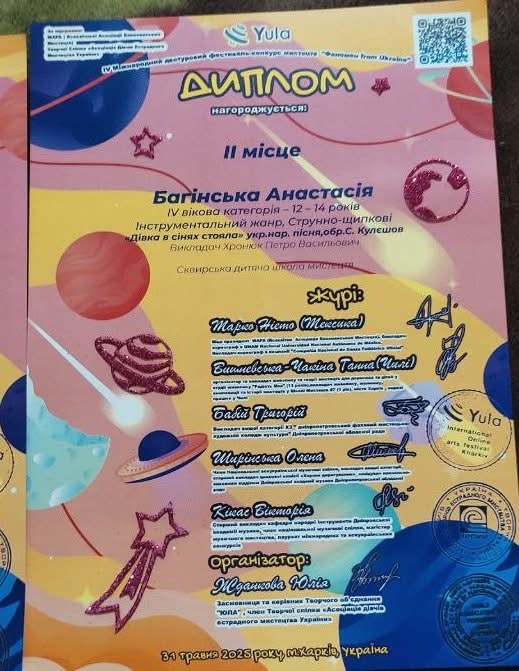 Щиро вітаємо юних музикантів та їхнього викладача з успіхом і бажаємо нових творчих злетів, натхнення та перемог! 🌟🎼