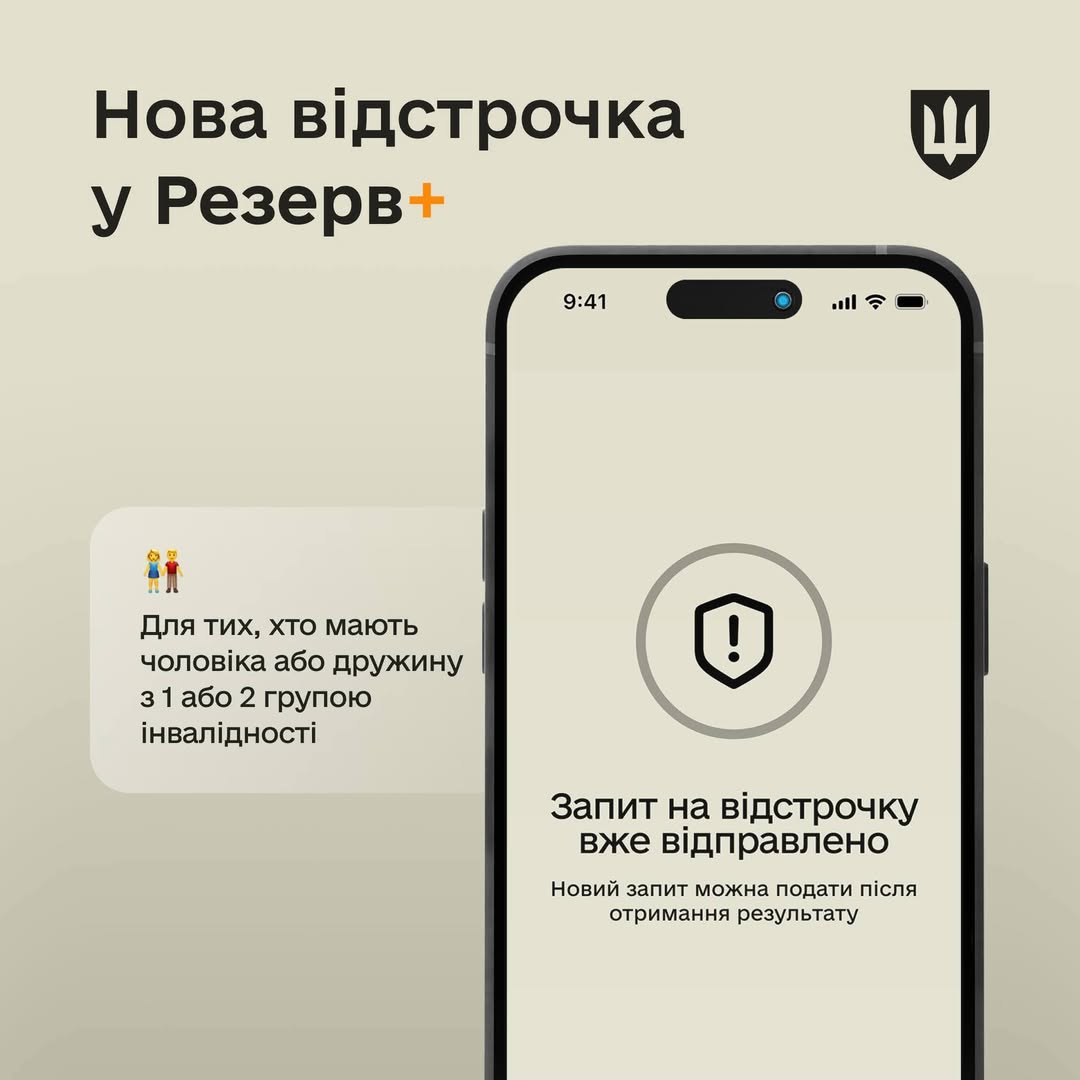 За інформацією Міністерство оборони України , відтепер 📱 В оновленні застосунку Резерв+ додалася нова відстрочка – для подружжя, в якому чоловік або дружина мають інвалідність І або II групи.