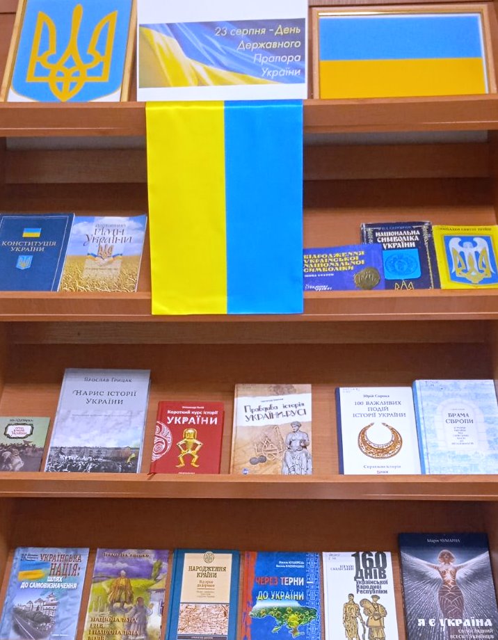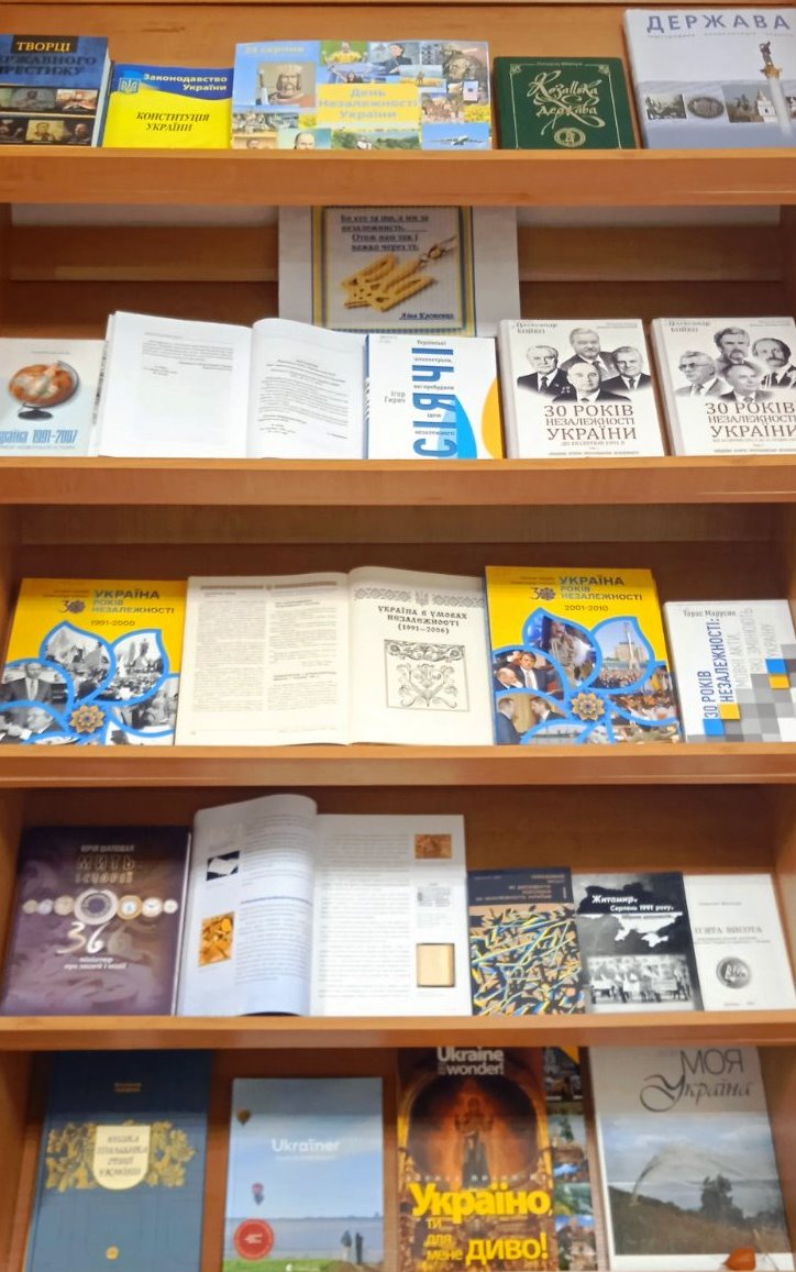 📖 На полицях цієї виставки представлені видання, присвячені історії та культурі нашої держави, символам державності, сторінкам героїчної історії. Також тут зібрані книги про тих, хто творив і боронив Україну. Усе це слугує потужним нагадуванням про те, що ми — вільний народ!