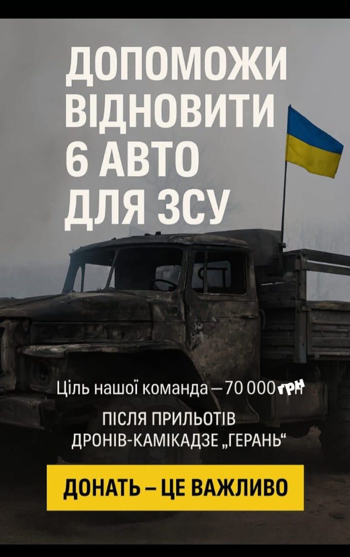 Приєднуйтесь до збору коштів! Кожна гривня важлива для ремонту бойових авто.