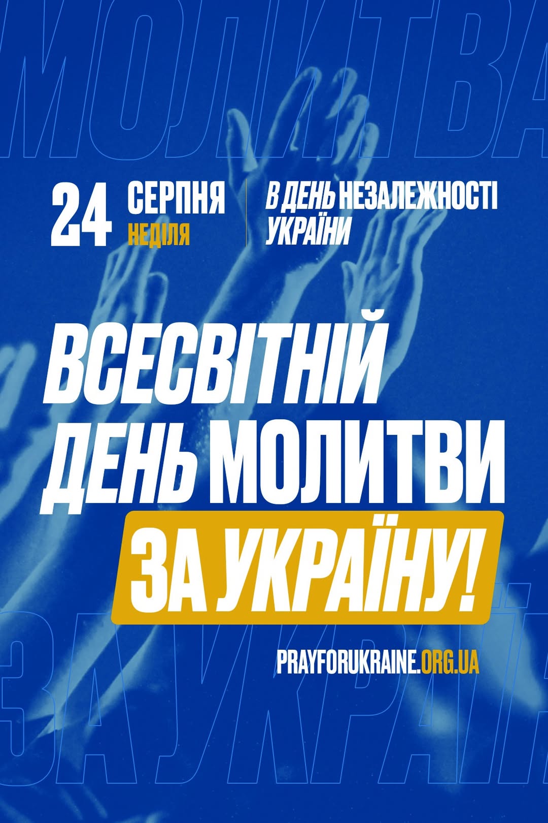 Просимо Вас 24 серпня 2025 року (або найближчим до цієї дати богослужбовим днем) у ваших храмах та інших місцях молитви, відповідно до Вашої релігійної традиції, звернутися до своїх вірян стосовно значення духовної солідарності з тими, хто страждає, та звершити спеціальну молитву за Україну і український народ. Ініціатива проведення Всесвітньої молитви за Україну має підтримку на рівні Президента України та релігійних лідерів церков і релігійних організацій України. Необхідна інформація та матеріали щодо молитви будуть доступні на сайті: www.prayforukraine.org.ua