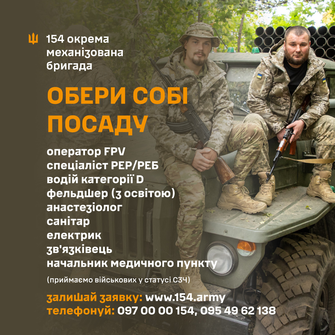 154-та окрема механізована бригада запрошує кожного, хто готовий стати на захист України, приєднатися до нашого бойового братства!