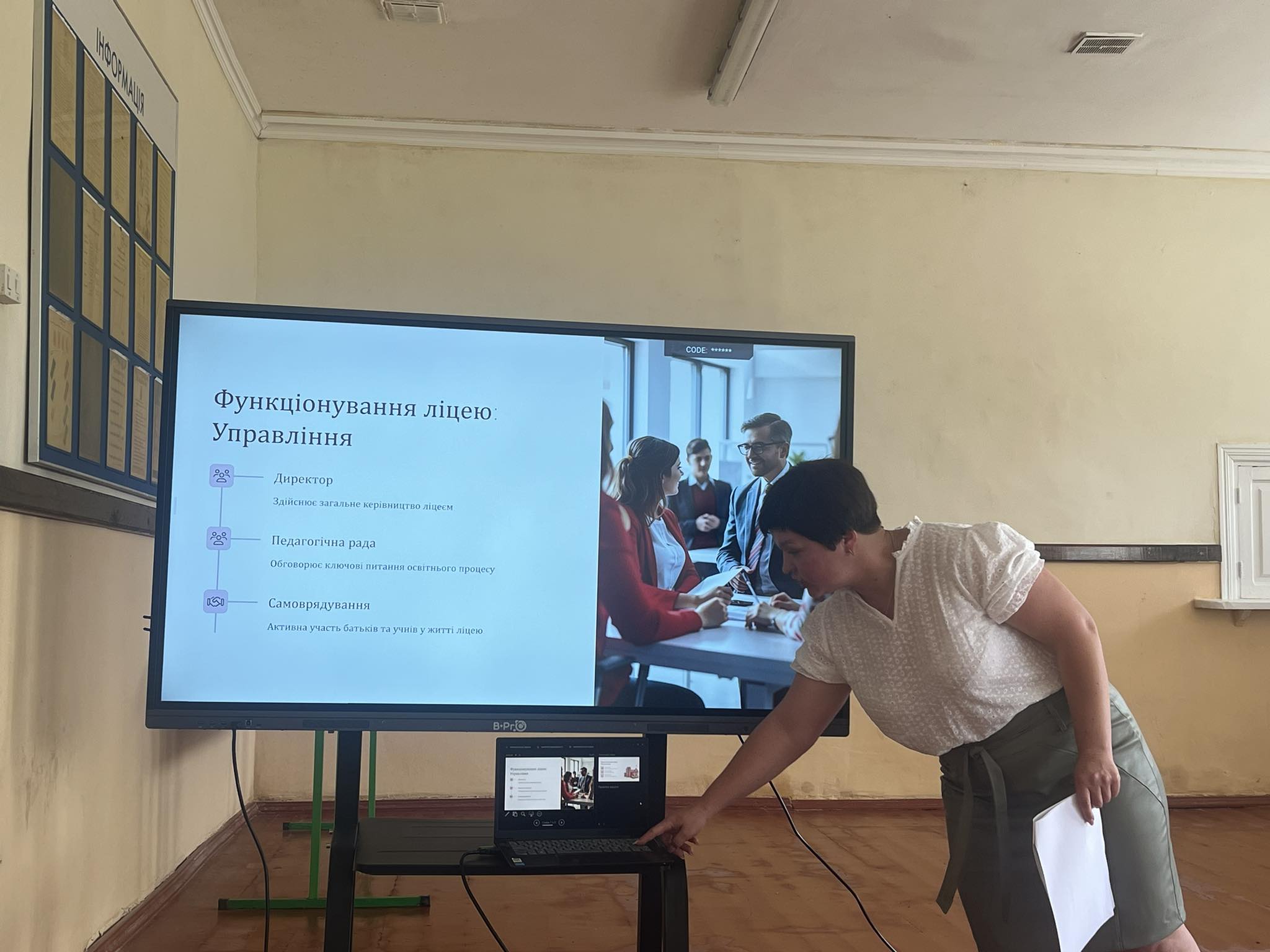 Руслана Лесько, заступник голови Полицької сільської ради, наголосила, що згідно з рішенням Рівненської обласної ради від 20 вересня 2024 року №986 «Про затвердження плану формування мережі закладів освіти Рівненської області», на базі Полицького ліцею передбачається функціонування академічного ліцею для всієї Полицької територіальної громади.