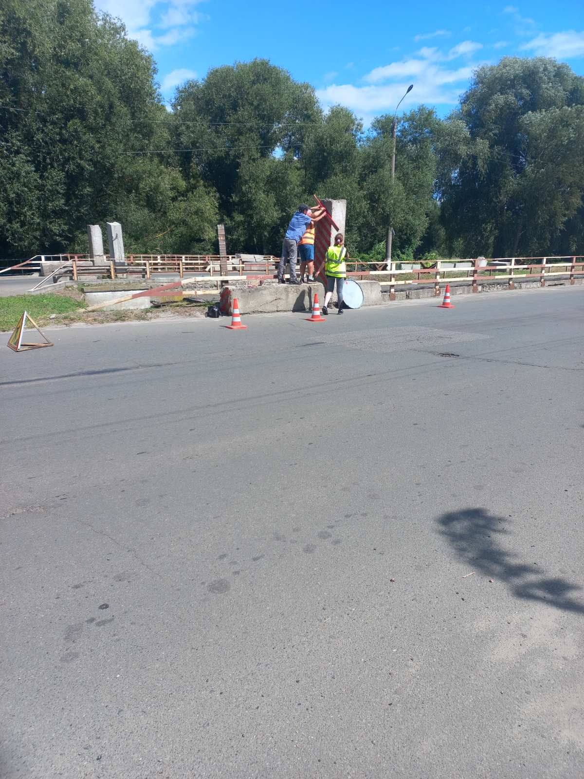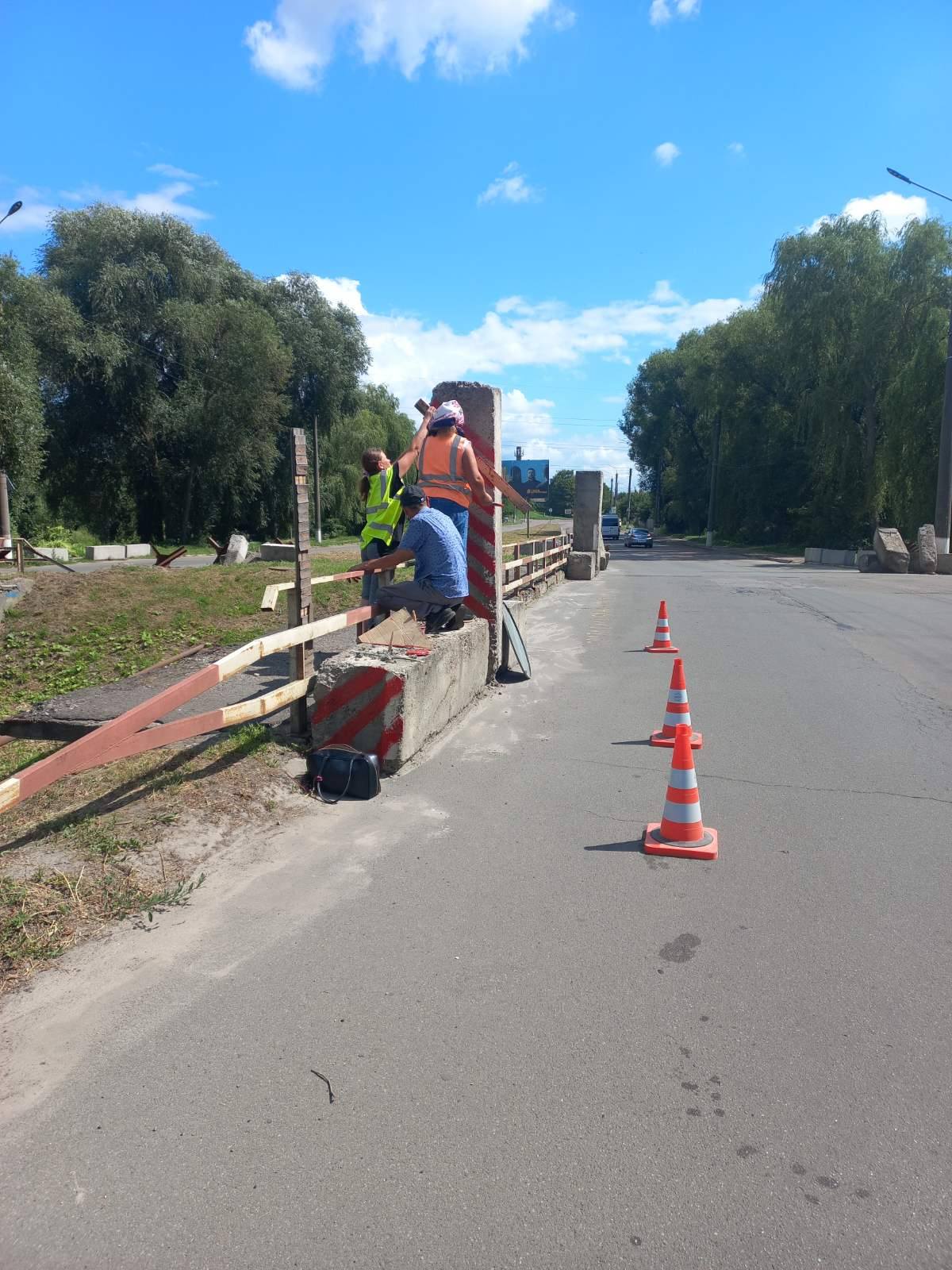 ☀️ Міст по вул.Сумська – нанесення попереджувальної розмітки на бетонні стовпи