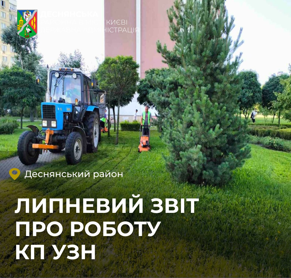 ☀️Попри спекотну погоду, фахівці КП УЗН Деснянського району активно працювали протягом липня, щоб наші парки, сквери та вулиці були доглянутими.