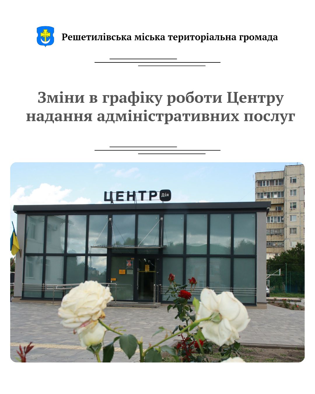 Шановні жителі та гості Решетилівської громади! До вашої уваги оновлений графік роботи ЦНАП: