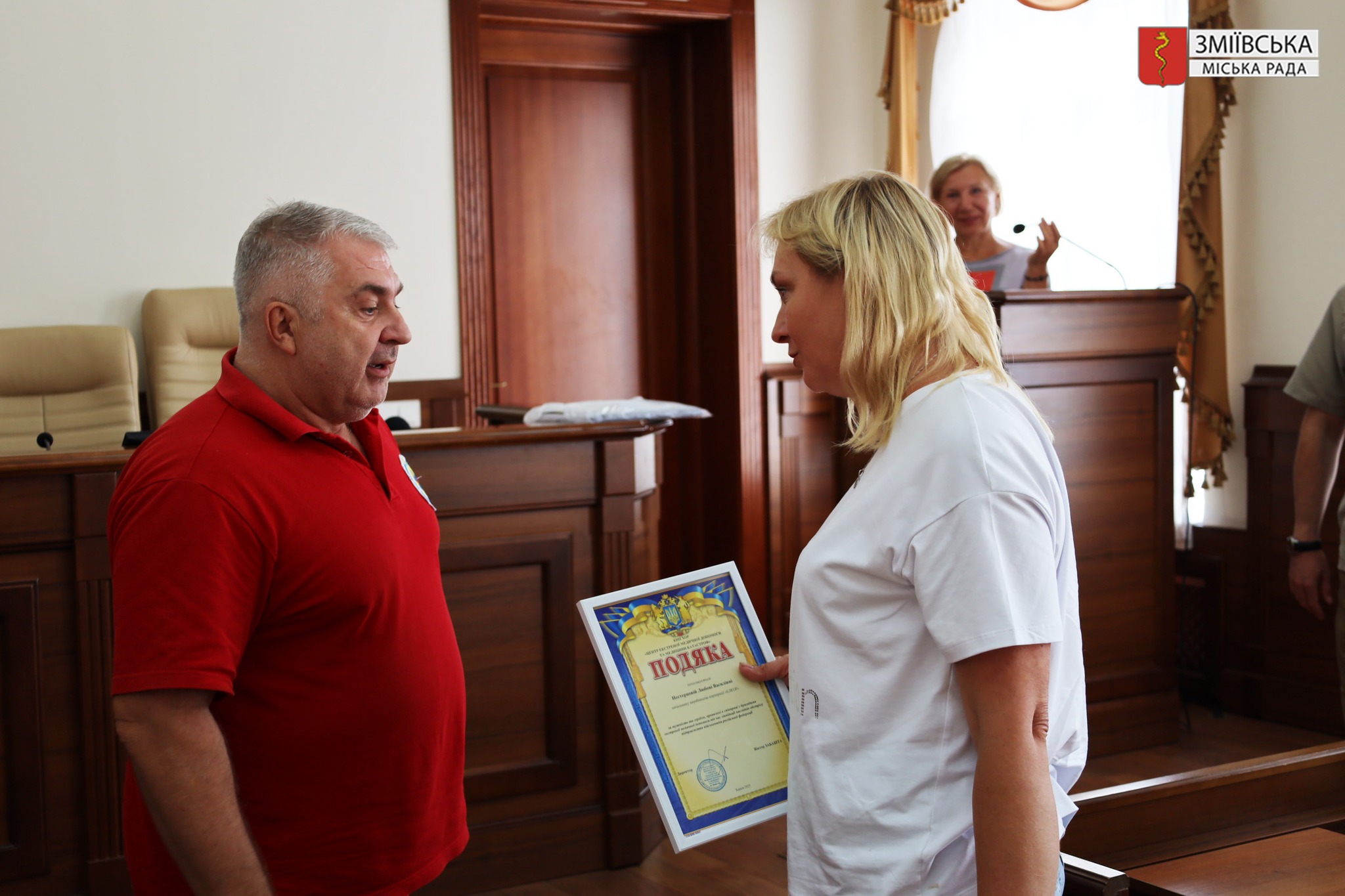 У Змієві відзначили медичних працівників Зміївського відділення екстреної (невідкладної) медичної допомоги КНП ХОР “Центр екстреної медичної допомоги та медицини катастроф”, які працювали у Вирішальному під час комбінованого удару російської федерації у ніч на 26 липня.