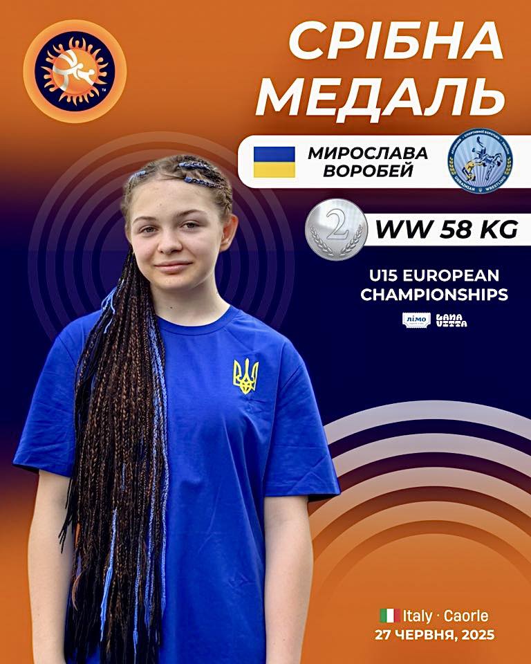 🥈Представниця Чернігівської області, у складі збірної команди Україні з вільної боротьби, Мирослава Воробей виборола «срібло». Вона виступала у ваговій категорії 58 кг.