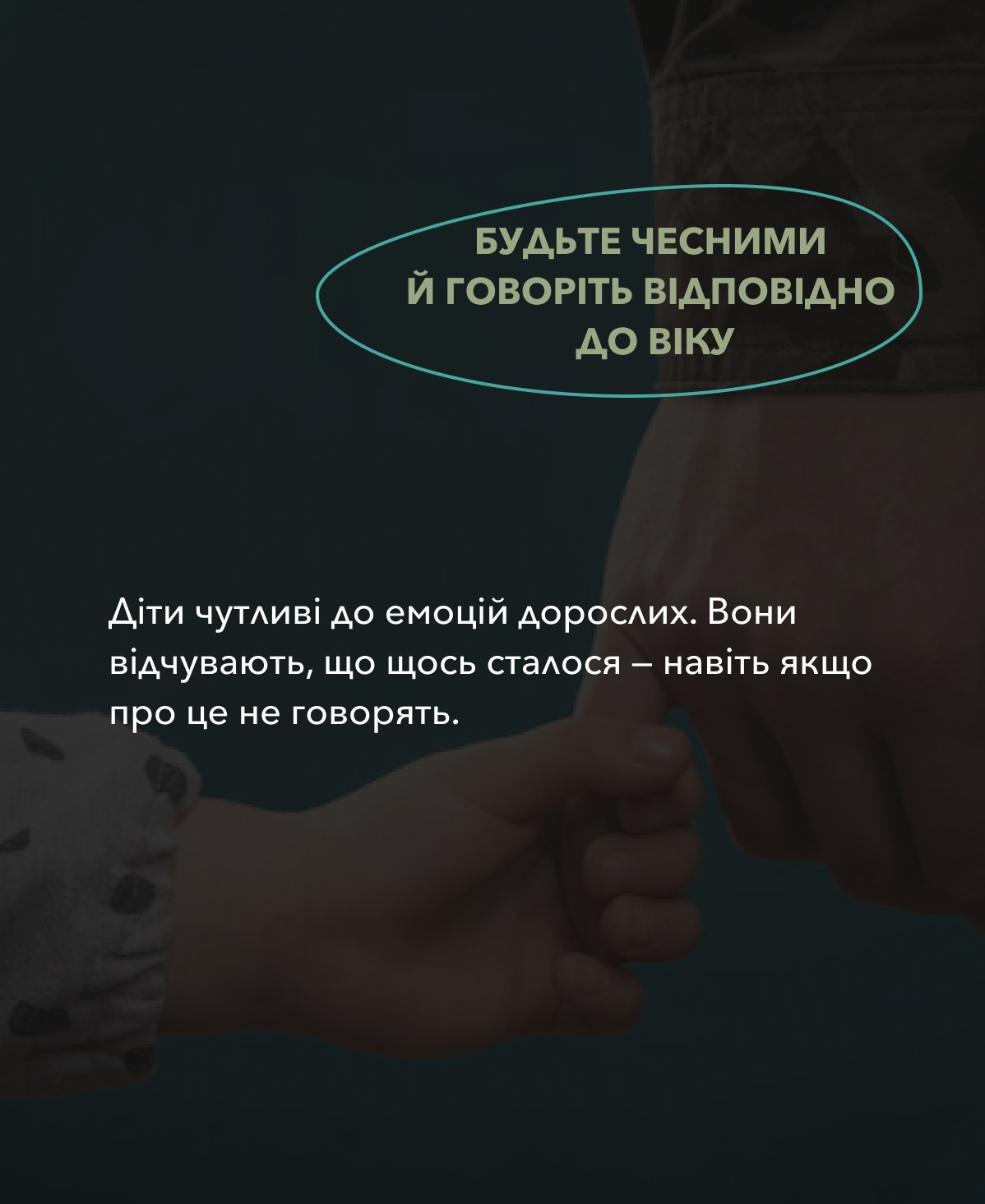 Як допомогти дитині пережити цей важкий час? Як говорити про зникнення безвісти, щоб не завдати ще більшої травми? Необхідно знайти слова підтримки та розради, щоб дитина почувала себе в безпеці.