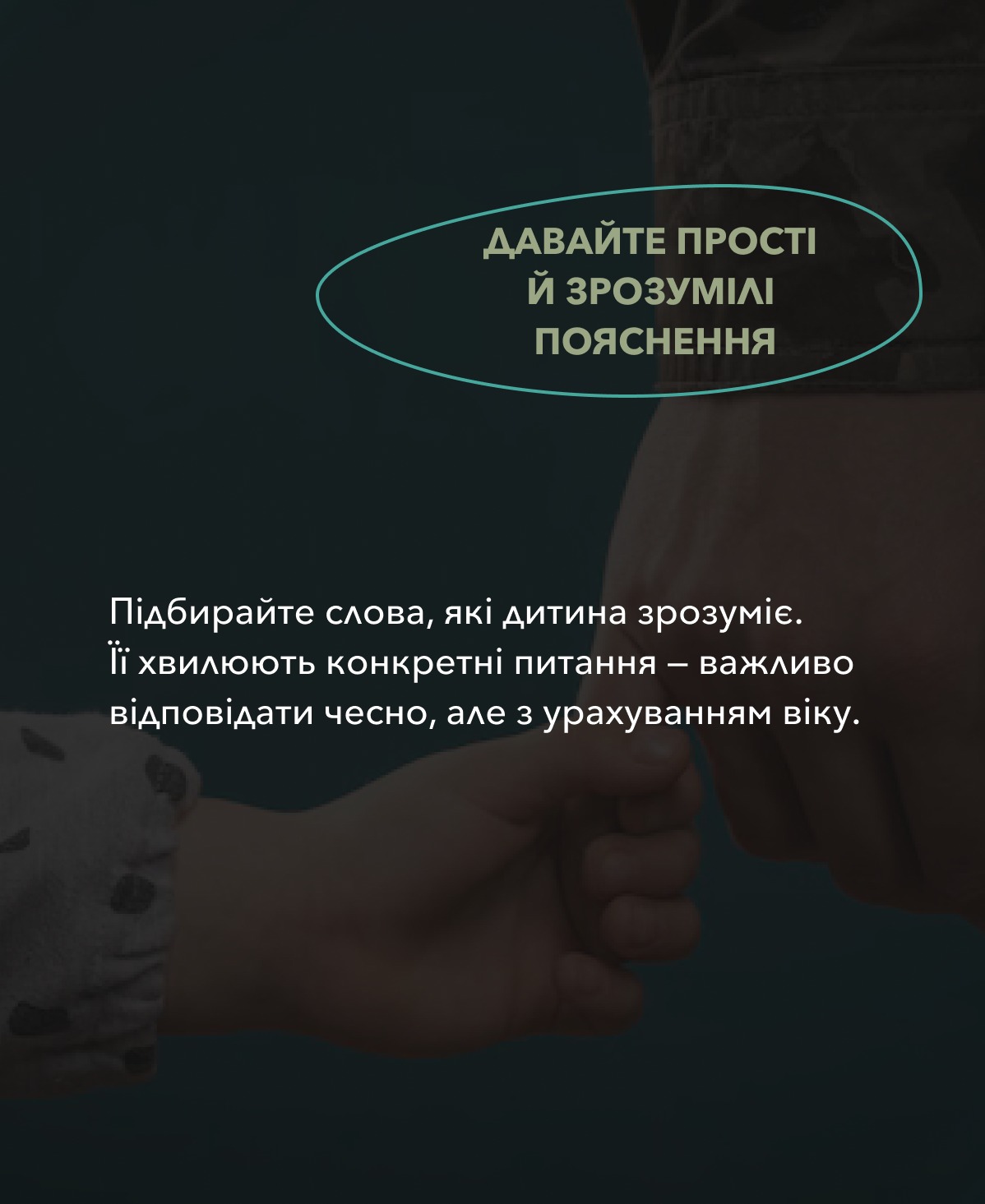 У цьому пості ми ділимося важливими рекомендаціями психологів Гарячої лінії кризової та юридичної підтримки Українського ветеранського фонду. Вони радять говорити чесно, м’яко та з максимальною турботою. Важливо пам’ятати, що відкритість і емпатія – це ключі до підтримки дитини в такий складний час.