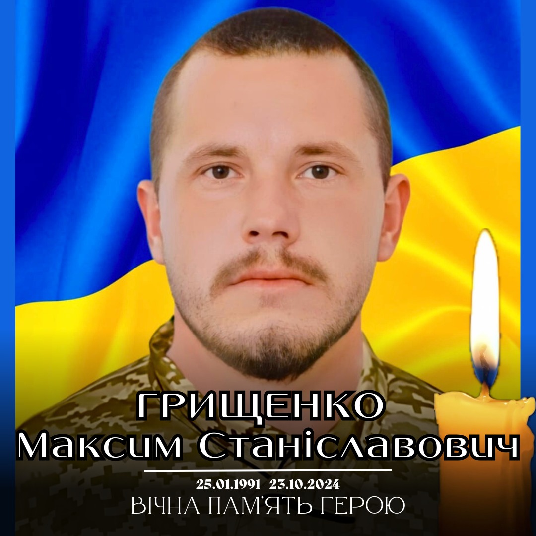 😭 У глибокій скорботі низько схиляємо голови перед світлою пам’яттю Героя Максима Грищенка. Висловлюємо щирі співчуття родині та близьким. Нехай земля йому буде пухом.