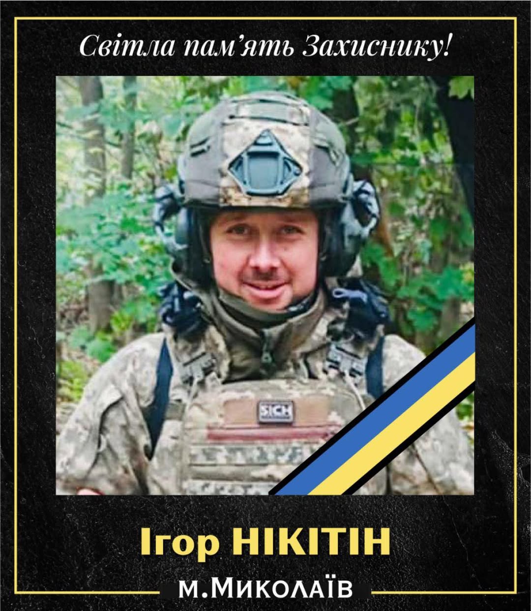 Знову скорбота торкнулася нашого міста. У жорстокій боротьбі за незалежність та суверенітет України загинув справжній Герой – Захисник НІКІТІН Ігор Михайлович, 1988 року народження, уродженець міста Миколаєва. Його відвага та самопожертва назавжди залишаться в наших серцях.