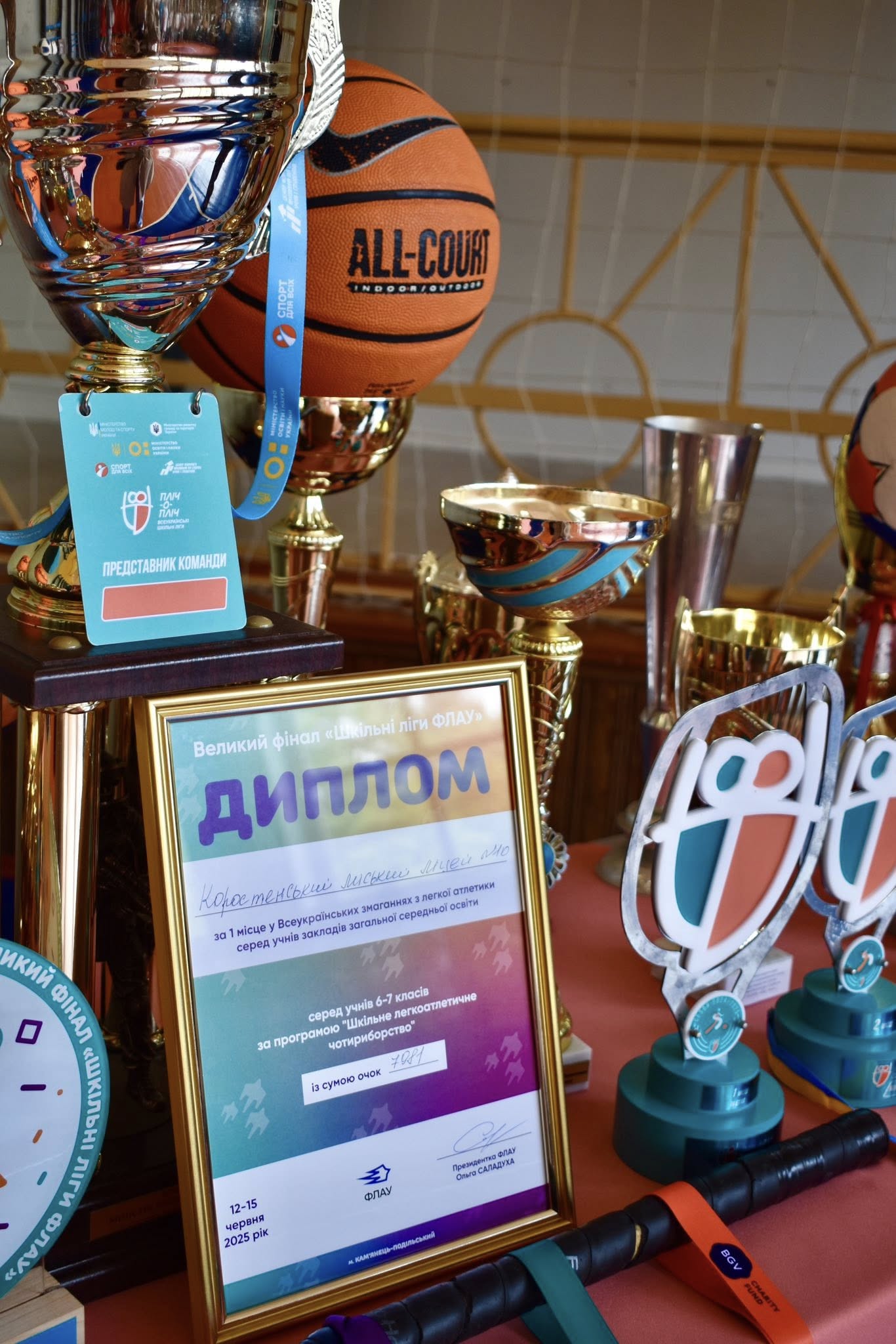 ❤️🔥🥇 Особливо вражаючою була перемога змішаної команди 6–7 класів. У складі команди виступали Кравець Анастасія, Ходаківська Анастасія, Матвієнко Софія, Розбицький Даніїл, Білецький Дмитро та Тиць Назарій. Під керівництвом досвідченого вчителя-тренера Олега Аласовича Ісмаїлова, юні спортсмени здобули золоту медаль у Великому фіналі Шкільної ліги Федерації легкої атлетики України з чотириборства. Змагання включали біг на 60 метрів, метання малого м’яча, стрибки у довжину та біг на витривалість, де команда продемонструвала злагодженість та майстерність.