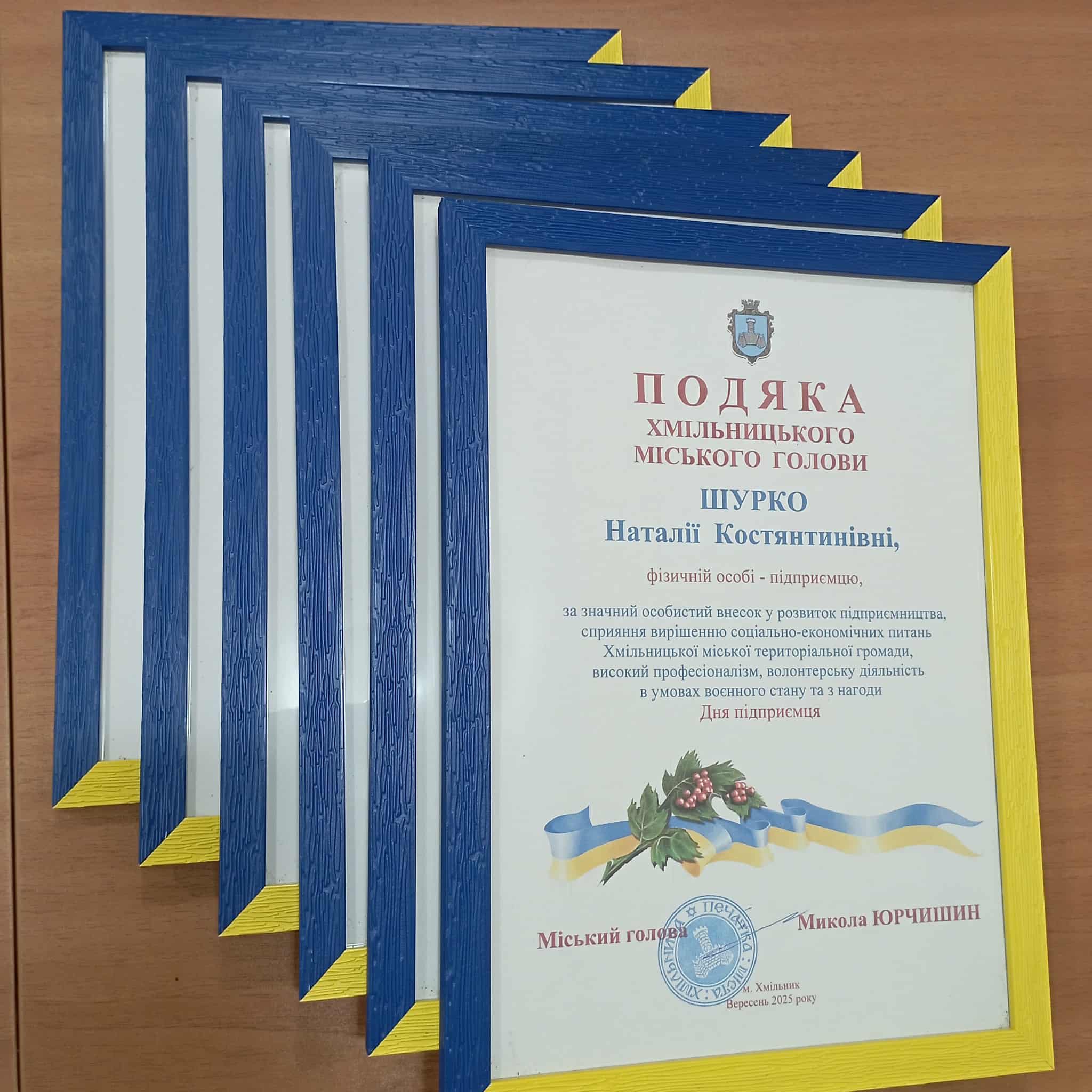 Цього року, згідно з рішенням виконкому Хмільницької міської ради, ☝️ за значний особистий внесок у розвиток підприємництва, сприяння вирішенню соціально-економічних питань Хмільницької міської територіальної громади, високий професіоналізм, волонтерську діяльність в умовах воєнного стану та з нагоди Дня підприємця, 🤝 грамотою міського голови було відзначено: