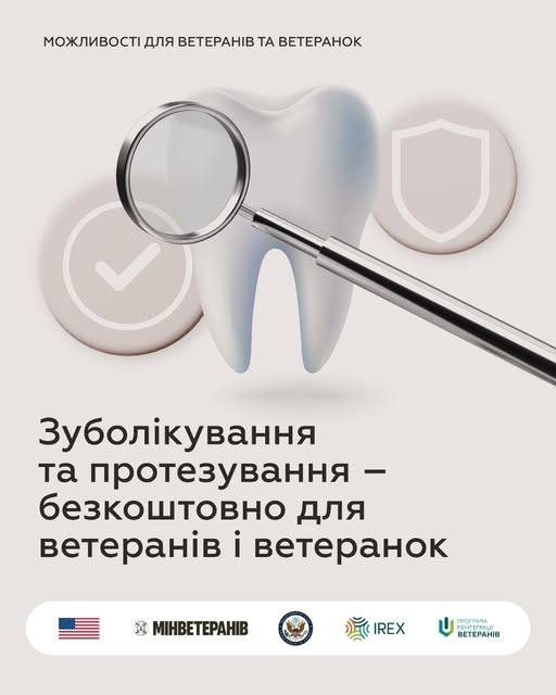 Важливо знати: ветерани та ветеранки можуть отримати послуги зубопротезування на суму до 34 966 грн за один звернення. Обсяг та специфіка послуг визначаються стоматологом індивідуально. Навіть якщо згодом знадобиться протезування іншого зуба, ви можете знову звернутися до лікаря, отримати направлення, і держава оплатить цю послугу в межах виділеного фінансування.