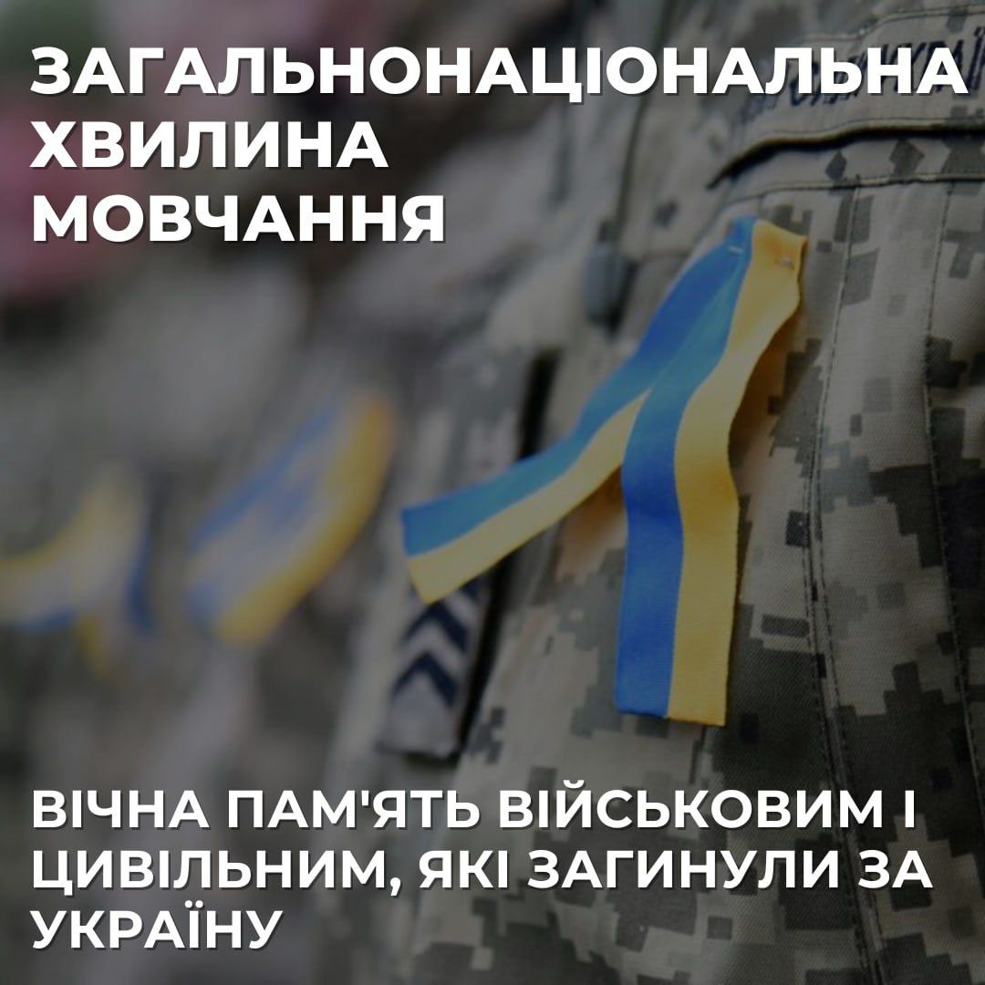 🙏Вшануємо пам’ять усіх військових, цивільних дорослих та дітей, які загинули у війні. Вшанування пам’яті загиблих – наш святий обов’язок. Кожного дня, о 9:00, приєднуйтеся до загальнонаціональної хвилини мовчання. Знайдіть час, зупиніться і згадайте тих, завдяки кому ми живемо сьогодні.