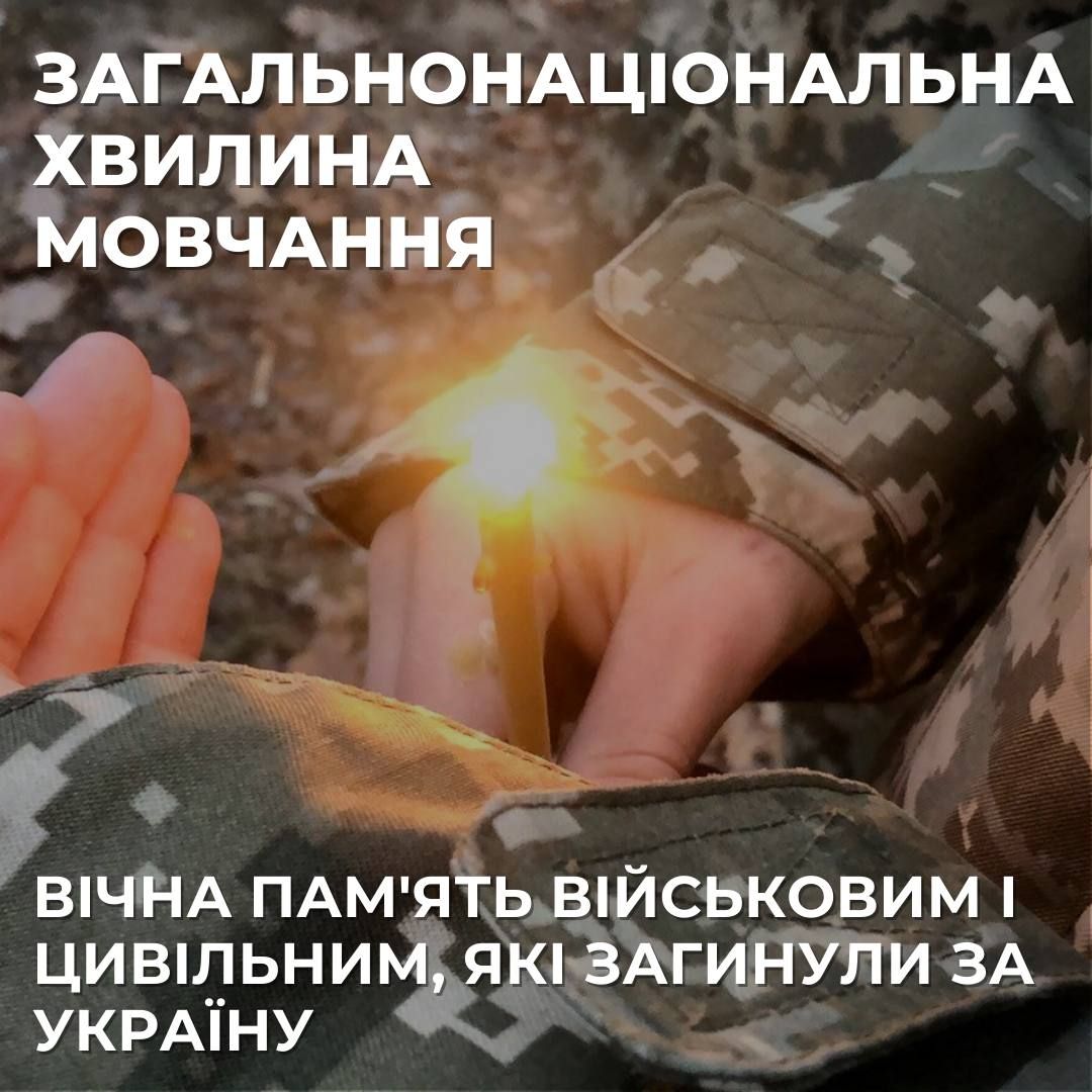 Щоранку, о 9:00, вся Україна замовкає. У цю мить тиші та скорботи, ми об’єднуємося в загальній хвилині мовчання, щоб вшанувати тих, чиє життя обірвала жорстока війна в Україні. Це мить, коли ми зупиняємося, щоб віддати данину шани не тільки військовим, які полягли на фронті, а й цивільним дорослим та дітям, які стали невинними жертвами цієї несправедливої агресії. Їхня Вічна пам’ять живе в кожному з нас. Це єдиний спосіб гідно вшанувати пам’ять загиблих.