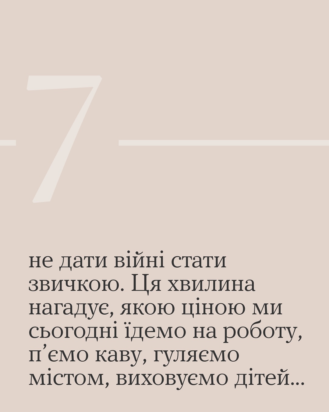 Коли ми зупиняємося, ми віддаємо шану тим, хто вже ніколи не зможе зупинитися. Ми пам’ятаємо їхню жертовність, їхню мужність та їхню віру в Україну. Ця хвилина – це також нагадування про те, як важливо цінувати мир та спокій, за які вони боролися.
