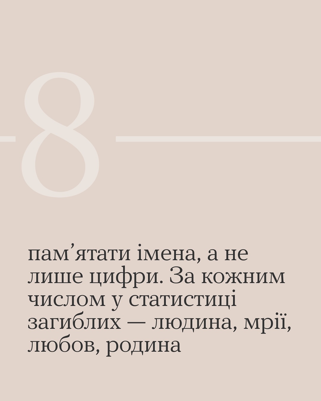 Пам’ятати – означає жити. Кожна хвилина мовчання – це цеглинка у фундаменті нашої пам’яті, яка не дозволить забути ціну, яку заплатила Україна. Цінуючи свій час, ми повинні пам’ятати про тих, хто пожертвував своїм заради нашого сьогодення. Шануй себе, шануй тих, хто загинув.