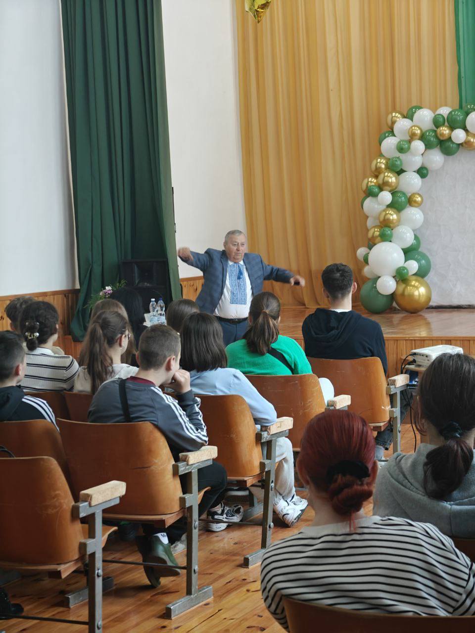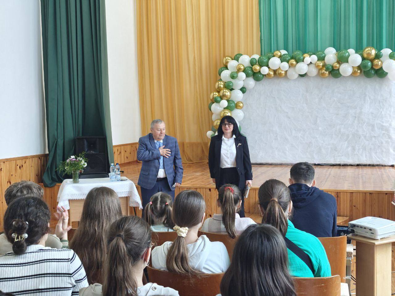 Євген Хотимчук ненав’язливо спонукає до формування національної гідності, навчає шанувати традиції, мову та культуру. Виступ Євгена Хотимчука перейшов у плин відвертого спілкування, до якого долучилися директорка Надія Кротік, учні, вчителі та колишній голова колгоспу Анатолій Шевчук.