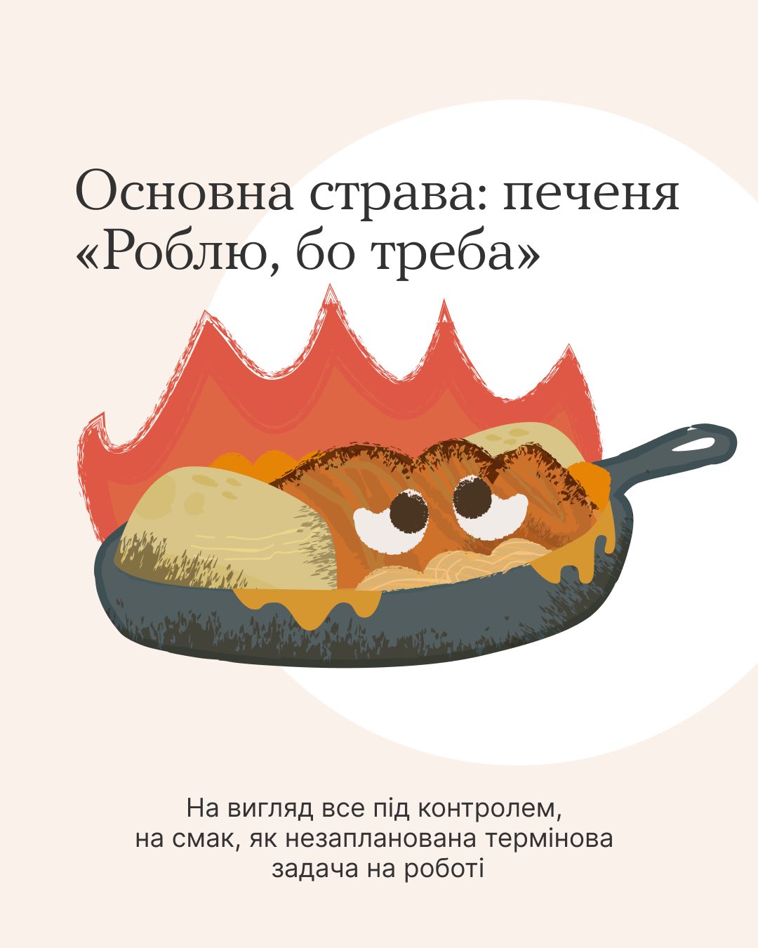 Зібрали дуже «смачну» правду, знайому кожному, хто бодай раз проживав вигорання 🍲. У цьому меню – трохи втоми й трохи гумору, а у твоєму обовʼязково має бути відпочинок 💛. Критикувати дозволено! Якій страві поставиш найнижчу оцінку? Інформація надана в межах Всеукраїнської програми з ментального здоров’я «Ти як?».