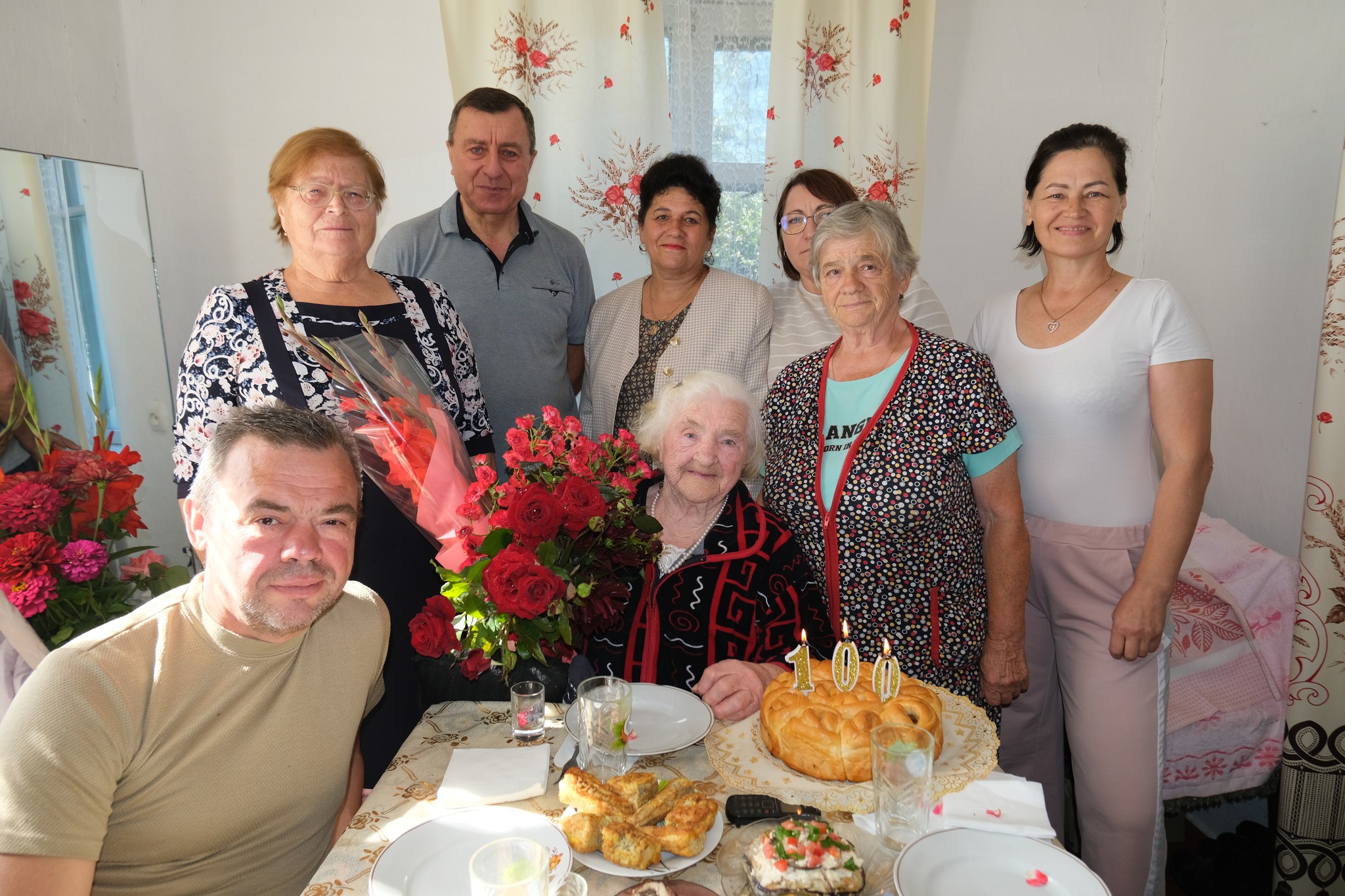 Сьогодні, у день столітнього ювілею шановна довгожителька приймала найщиріші вітання від від міського голови Віктора Бичкова, а в його особі усієї громади, старости села, працівників агропідприємства, в якому має паї. Бережно тримала квіти і складала поруч подарунки, Подяки та листівки.