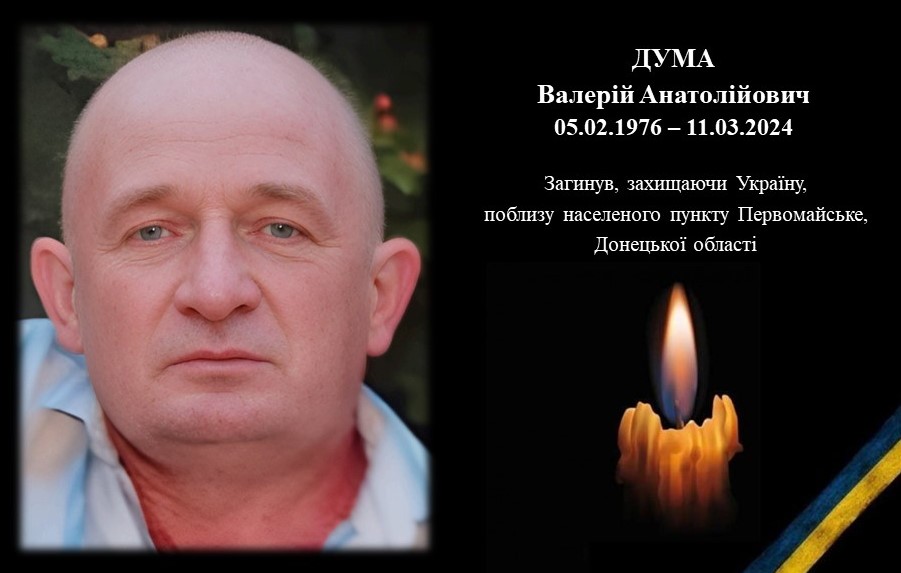 У скорботі та молитві низько схиляємо голови, вшановуючи пам’ять ДУМИ ВАЛЕРІЯ АНАТОЛІЙОВИЧА. Йому – доземний уклін, вічна шана та пам’ять.