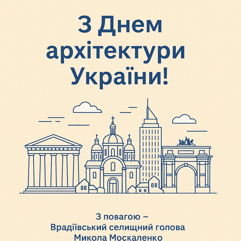 Від імені Врадіївської селищної ради та особисто Врадіївського селищного голови Миколи Москаленка, ми щиро вітаємо всіх, хто присвятив своє життя архітектурі, з професійним святом – Днем архітектури України!