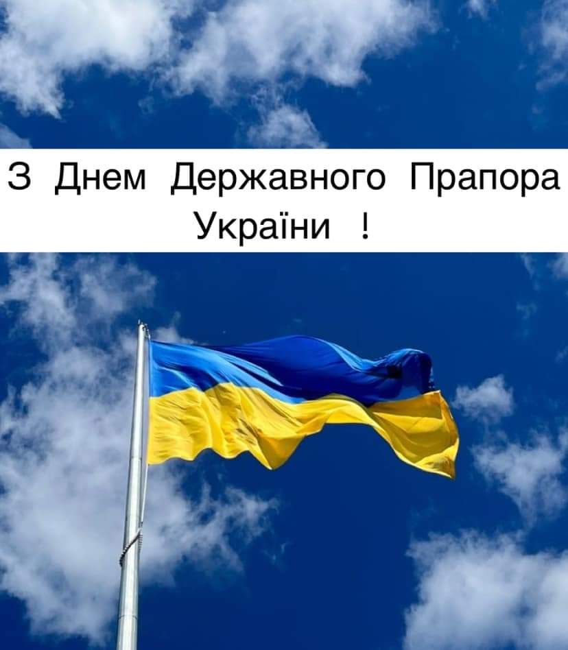 З Днем Державного Прапора України! Цього дня, відзначаючи державну приналежність, ми вшановуємо символ нашої єдності та незламності. Державний Прапор України – це не просто кольори, це історія боротьби, це мрії поколінь, це нагадування про нашу суверенність. У цей святковий день ми з особливою повагою згадуємо тих, хто боронив і боронить нашу землю під цим стягом. Їхня мужність, жертовність та любов до Батьківщини є найвищим проявом патріотизму.