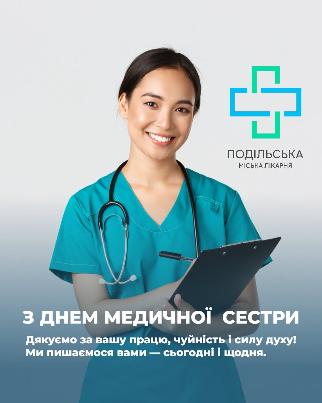 Ми висловлюємо щиру подяку нашим медичним сестрам за їхню невтомну працю, безмежну чуйність та надзвичайну силу духу! Ваша самовідданість надихає, а професіоналізм вражає. Ми пишаємося кожною з вас – не лише сьогодні, але й щодня! Нехай ваша праця приносить вам задоволення та вдячність пацієнтів.