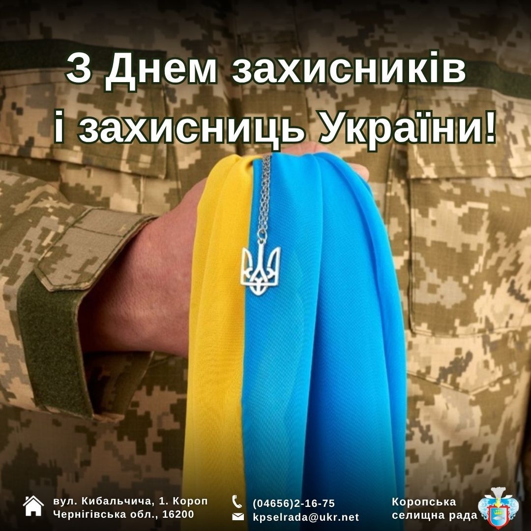 Сьогодні ми відзначаємо свято, що уособлює незламний дух, багатовікову історію та героїзм нашого народу. Від славних часів запорозьких козаків до сучасних захисників, які стоять на варті свободи, це день, що нагадує про відвагу, честь та самопожертву. Ми вшановуємо тих, хто своєю мужністю і стійкістю забезпечує наше право на мирне життя, можливість працювати, творити та будувати майбутнє для наступних поколінь. Ваша боротьба за незалежність, суверенітет та територіальну цілісність України є запорукою нашої Перемоги.