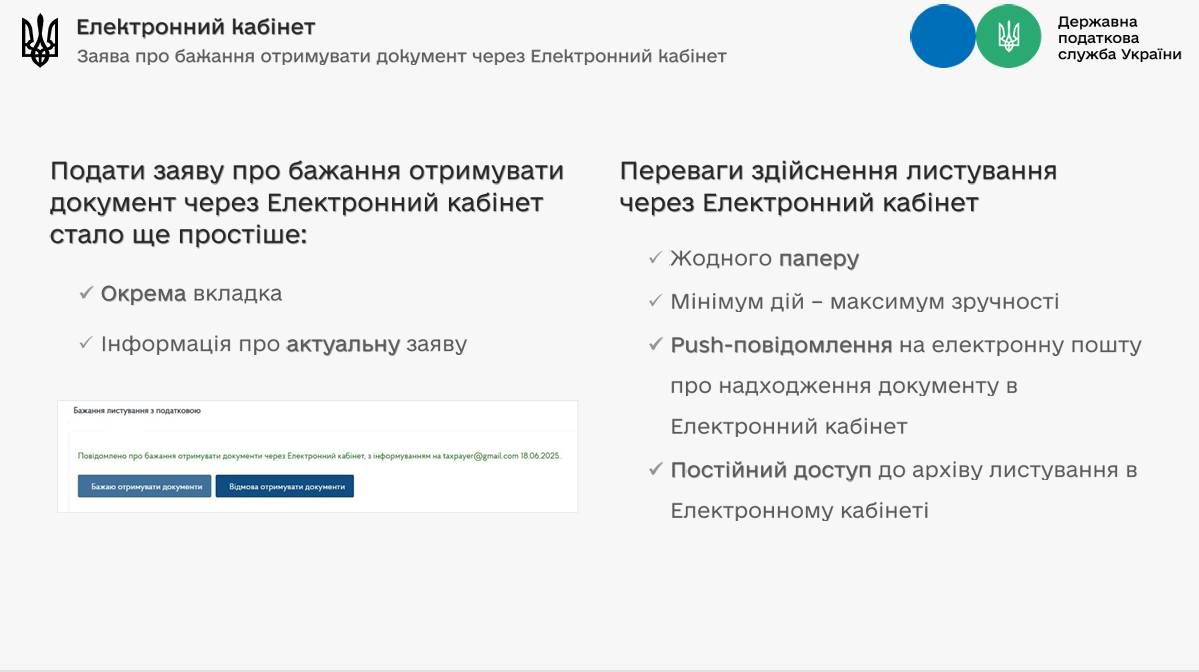 📑💻З метою підвищення ефективності інформаційної взаємодії з контролюючими органами, Державна податкова служба України звертає увагу на можливість здійснення платниками податків листування в електронному вигляді через Електронний кабінет: https://gromada.org.ua/gromada/vilshanka/news/1752500547/
