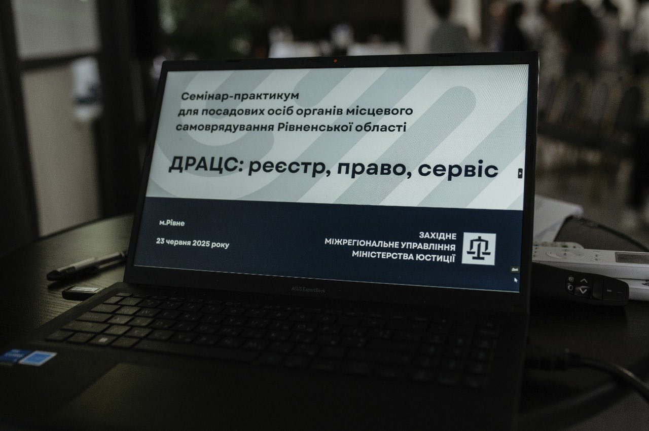 З метою підвищення фахового рівня посадових осіб, залучених до реалізації повноважень у сфері державної реєстрації актів цивільного стану регіональна координаторка Західного міжрегіонального управління Міністерства юстиції Оксана Сальчук спільно з фахівцями відділу державної реєстрації актів цивільного стану у Рівненській області провели семінар-практикум для посадових осіб органів місцевого самоврядування «ДРАЦС: реєстр, право, сервіс».