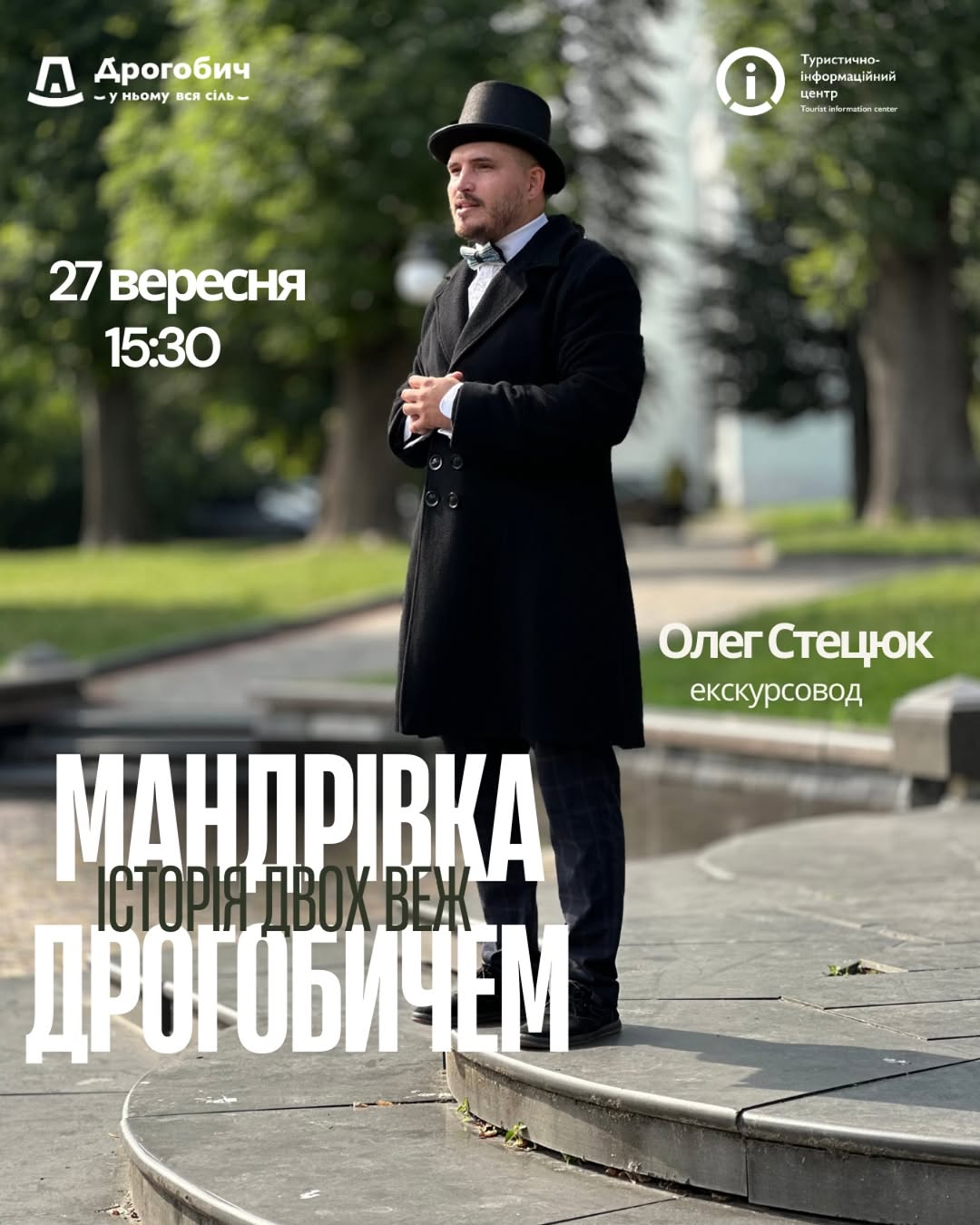 Екскурсію проводитиме Олег Стецюк – відомий місцевий екскурсовод, який славиться своїм харизматичним стилем викладу та глибокими знаннями історії Дрогобича. Він поділиться унікальними фактами та маловідомими історіями, які роблять це місто таким особливим. Ця подорож обіцяє бути не лише пізнавальною, але й надзвичайно емоційною, справжньою мандрівкою у часі, яка занурить учасників в епохи минулого.