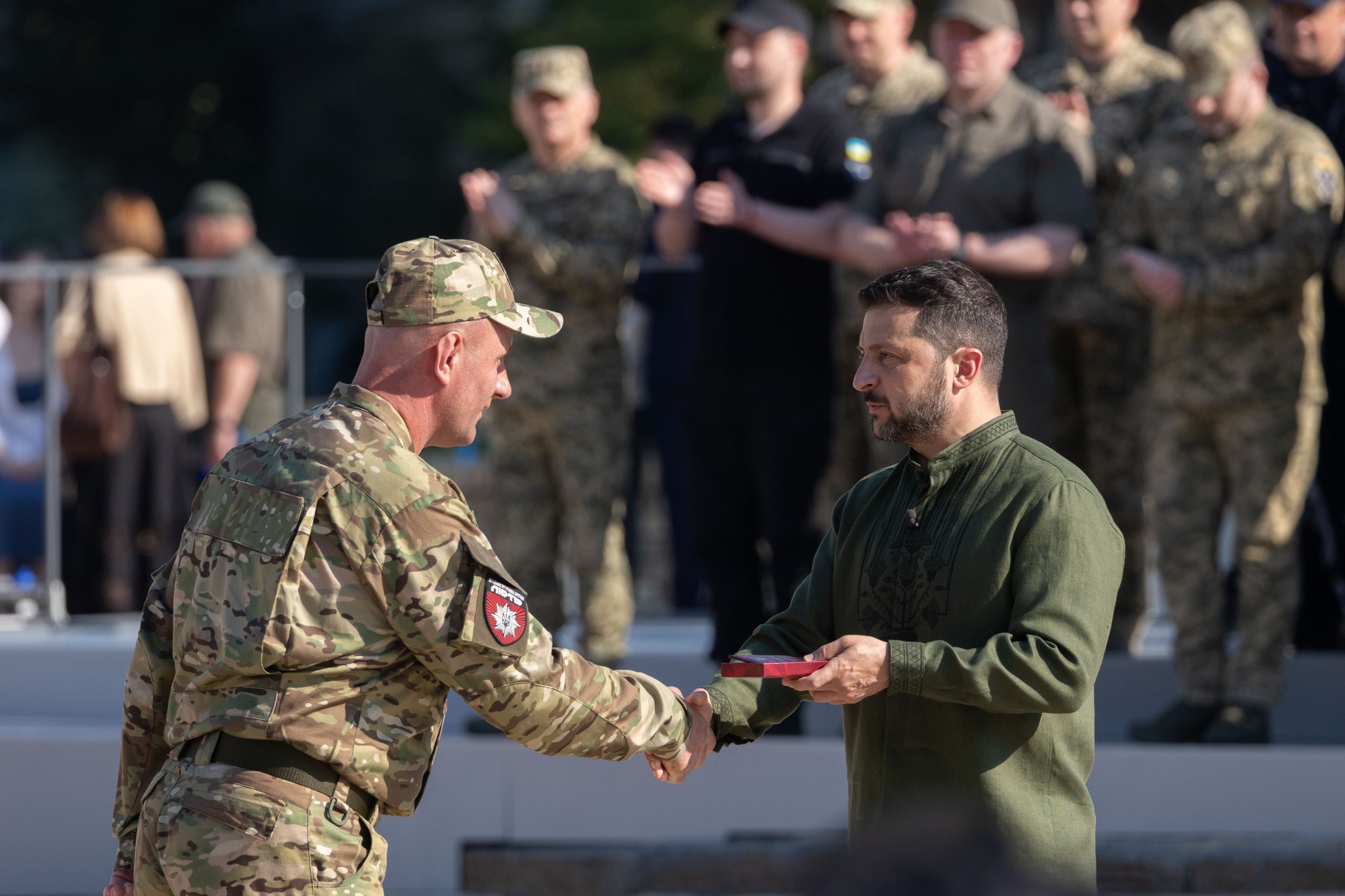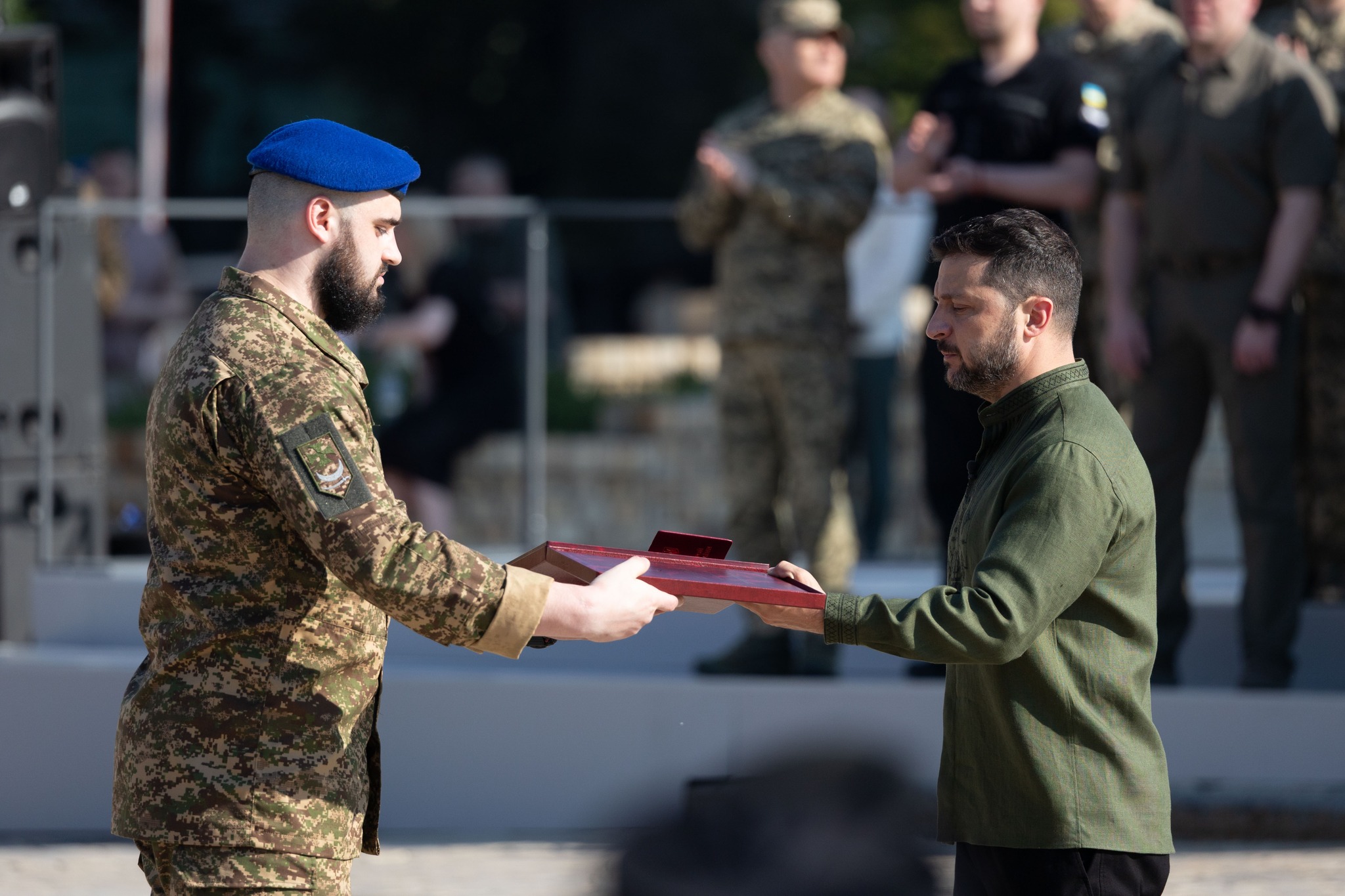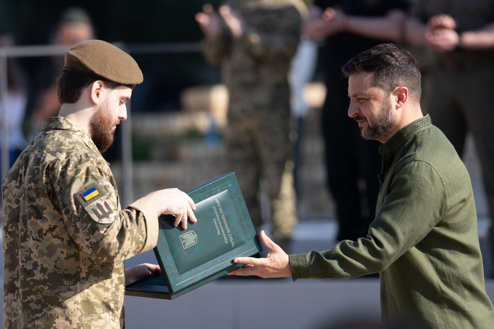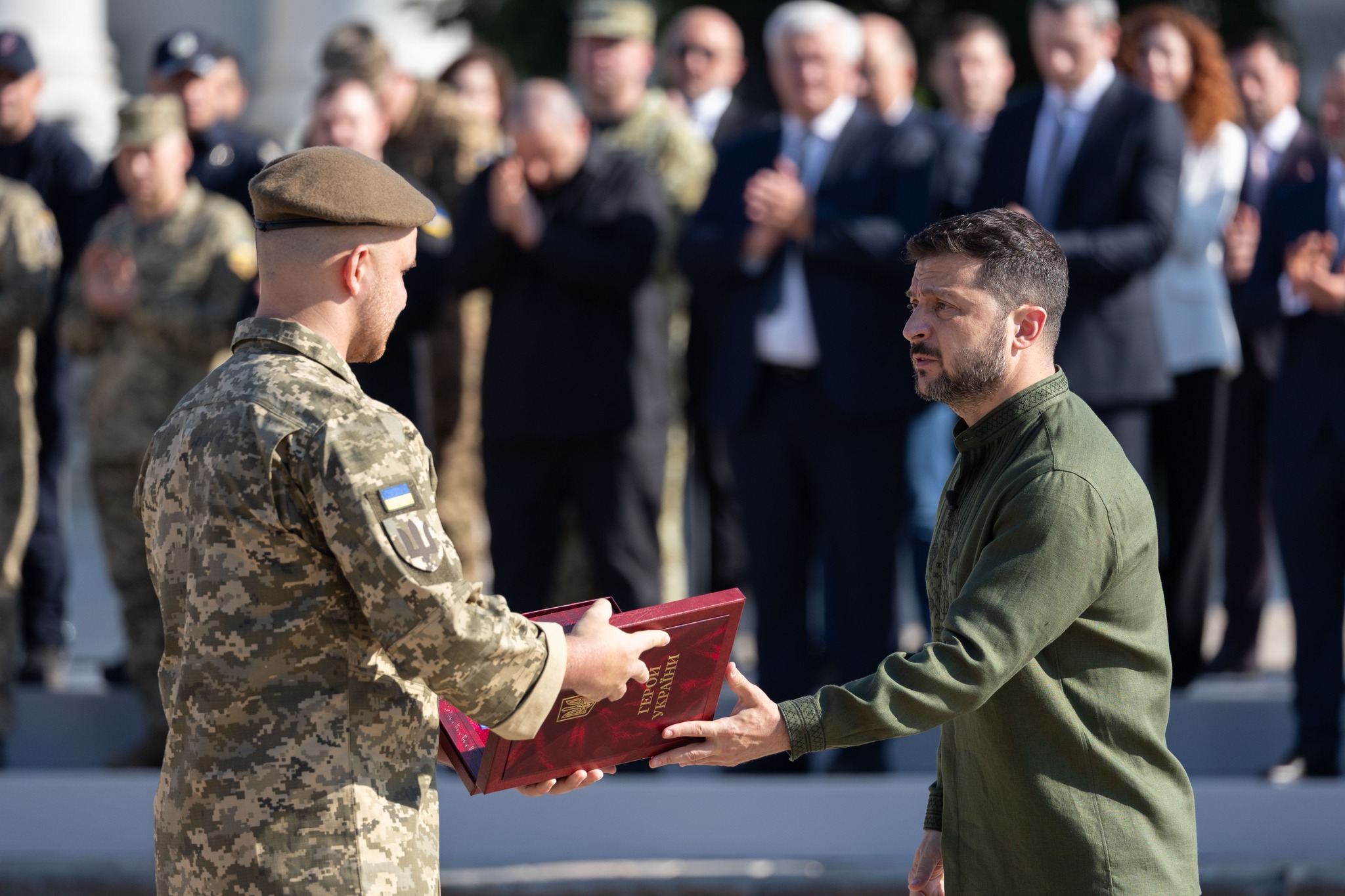 З нагоди Дня Української Державності та Дня хрещення Київської Русі – України Президент Володимир Зеленський відзначив найвищими державними нагородами українських воїнів, зокрема Героїв України, передав ордени рідним загиблих, вручив бойові прапори, відзнаки «За мужність та відвагу» й стрічки з почесними найменуваннями командирам підрозділів, а також – нагороди цивільним українцям та українкам і паспорти громадянина України 14-річним дітям.