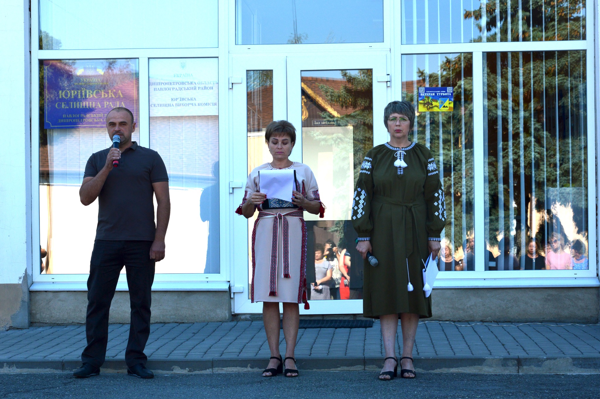 У заході взяли участь працівники закладів та установ, виконавчого комітету громади та небайдужі мешканці Юріївки. З вітальним словом до присутніх звернувся перший заступник селищного голови Олександр Зражевський, який привітав присутніх зі святом та підкреслив важливість національної символіки як уособлення незалежності, гідності й єдності українського народу.