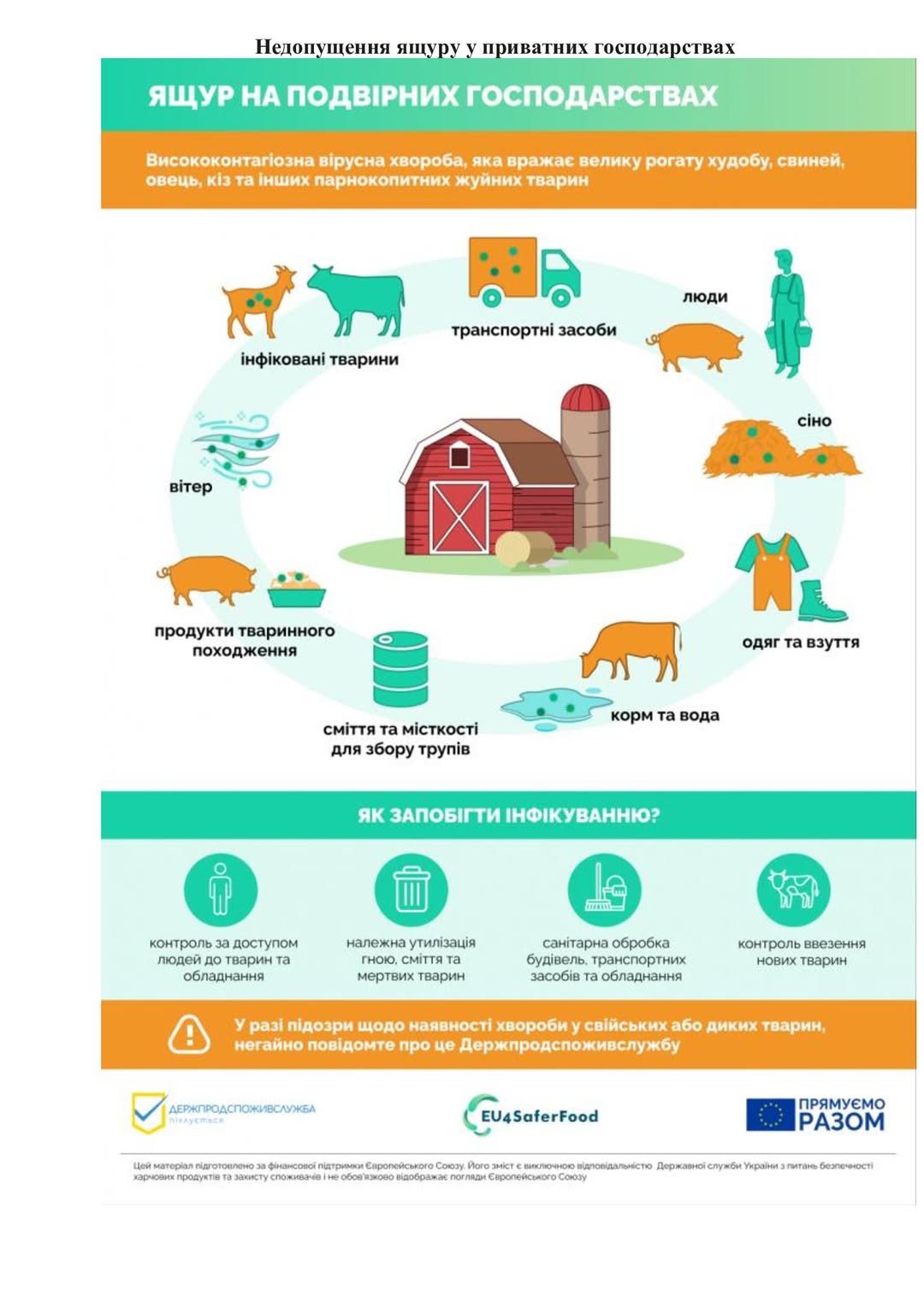 Зважаючи на зафіксовані випадки ящуру в сусідніх країнах та нещодавнє виявлення хвороби в Азербайджані, Державна служба України з питань безпечності харчових продуктів та захисту споживачів (Держпродспоживслужба) вживає комплексних заходів на всіх рівнях для запобігання занесенню та розповсюдженню цього небезпечного захворювання на території України. Нагадуємо, що ящур – це висококонтагіозне вірусне захворювання, спільне для людей і тварин, яке може призвести до значних економічних збитків, включаючи вибраковку всього поголів’я. Наразі Україна офіційно залишається вільною від ящуру, але пильність залишається надзвичайно важливою.