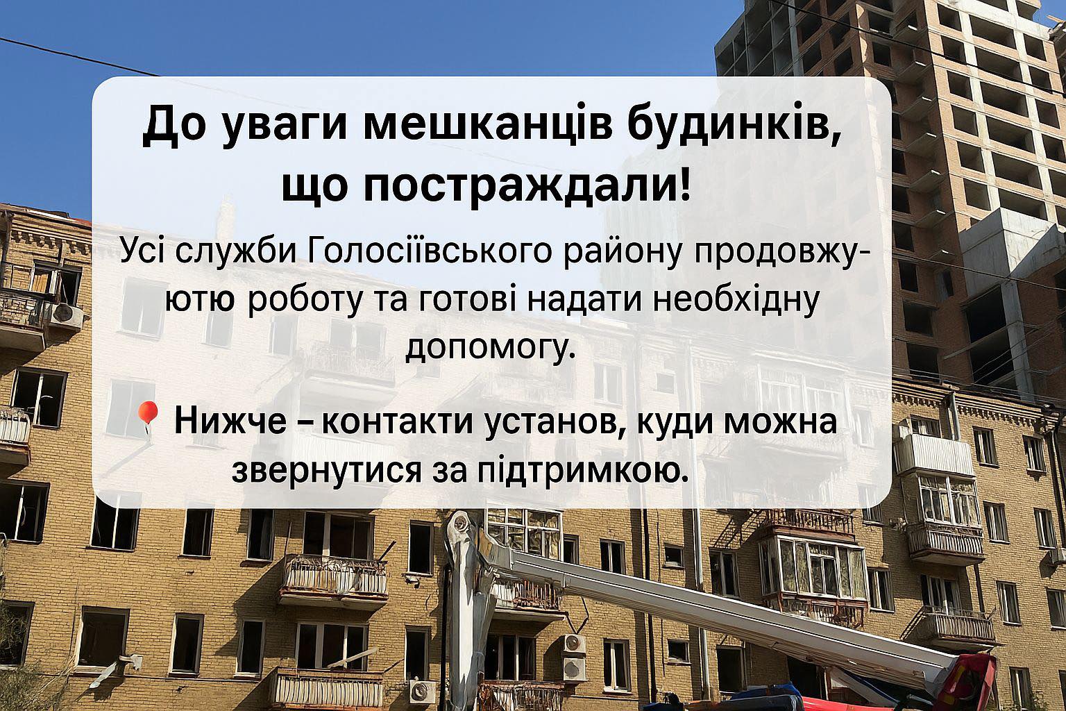 З понеділка, 1 вересня, усі служби Голосіївського району Києва відновлюють свою повноцінну роботу, надаючи допомогу мешканцям, які її потребують. Нижче наведено актуальну інформацію щодо адрес та контактних телефонів ключових установ, до яких можна звернутися за підтримкою.