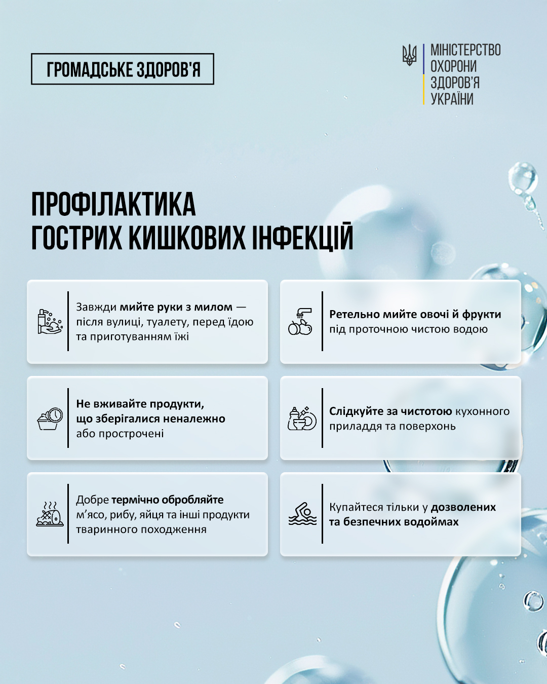 🧫З початку року в Україні вже зафіксовано 38 спалахів гострих кишкових інфекцій. Зареєстровано 24 810 випадків таких інфекцій, усі захворілі отримали необхідну медичну допомогу.