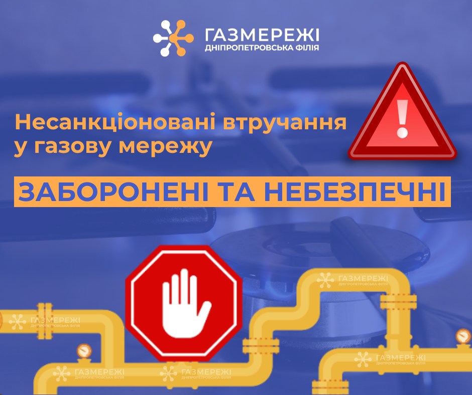Якщо ви маєте інформацію про будь-які незаконні втручання у газову мережу, негайно повідомте про це у службу безпеки Дніпропетровської філії «Газмережі» за номером (067) 118-98-83. Ваша конфіденційність гарантована. Своєчасне інформування допомагає запобігти аваріям та захистити громаду.